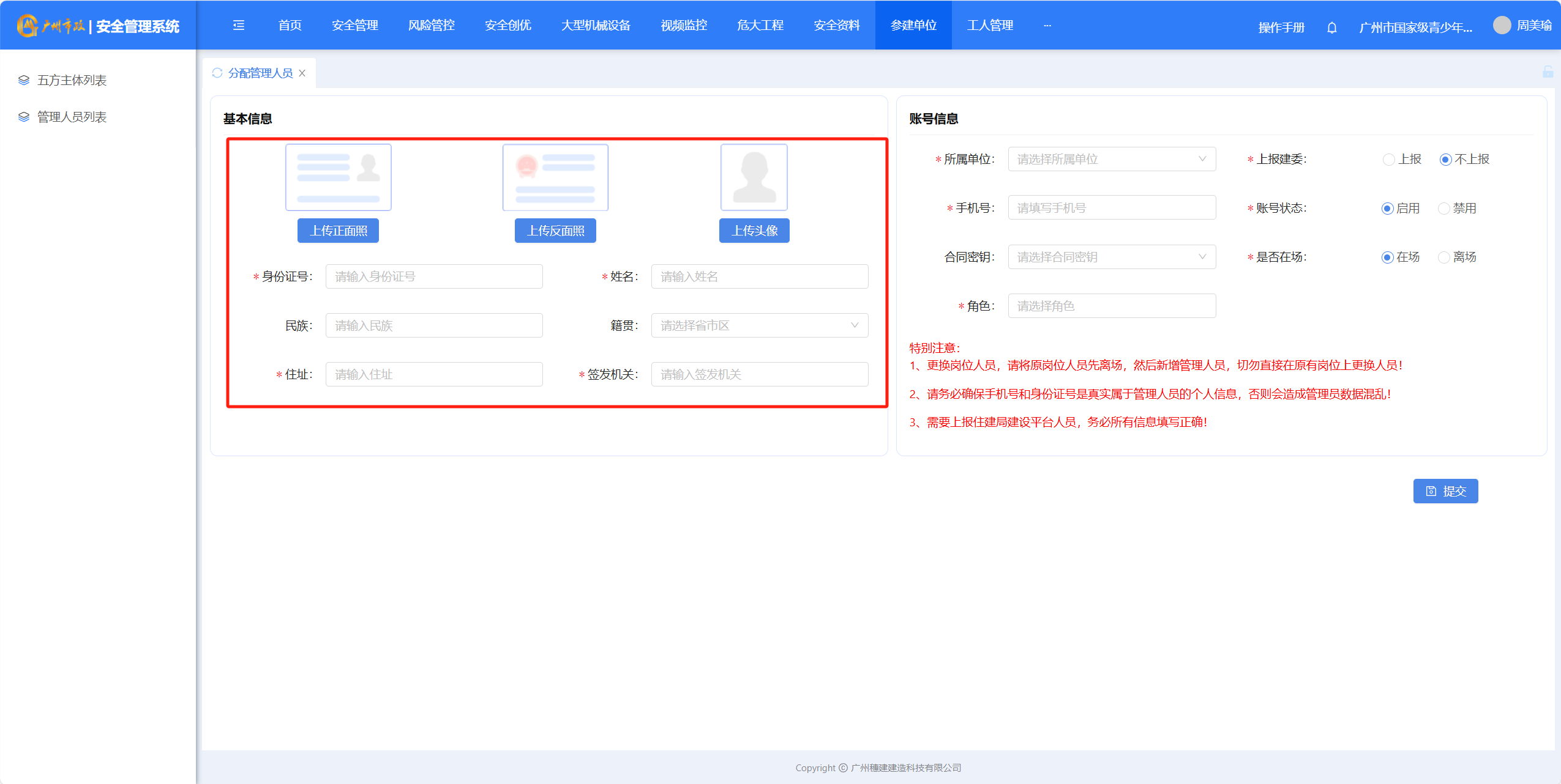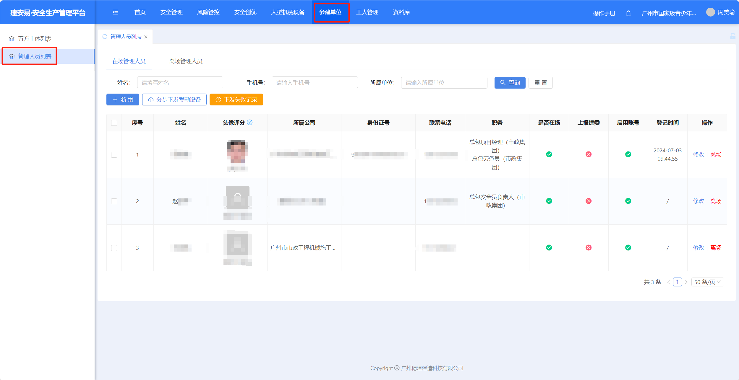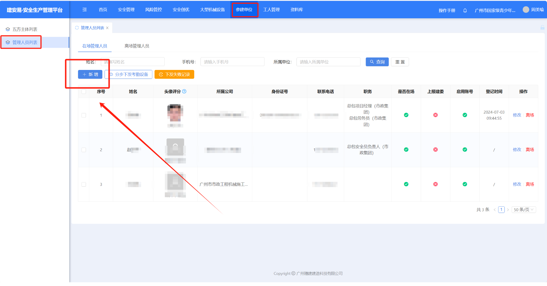 (1)点击【参建单位】-【管理人员列表】