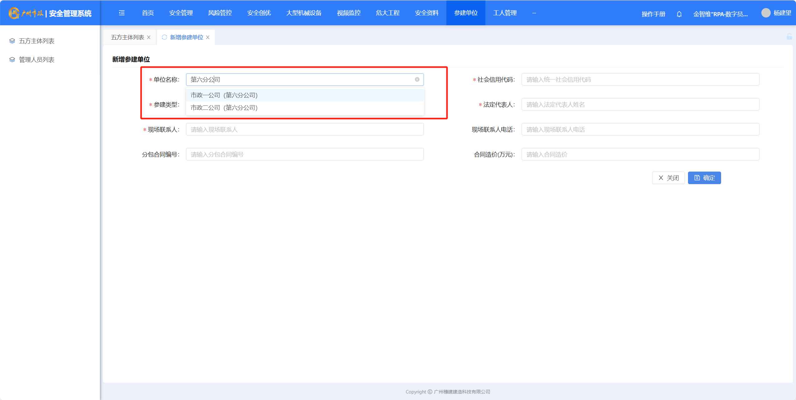 1.五方主体列表—新增参建单位