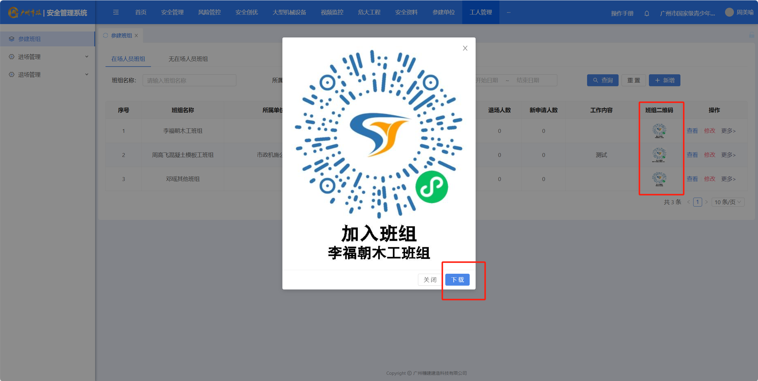 (3)点击班组二维码,进行下载保存。