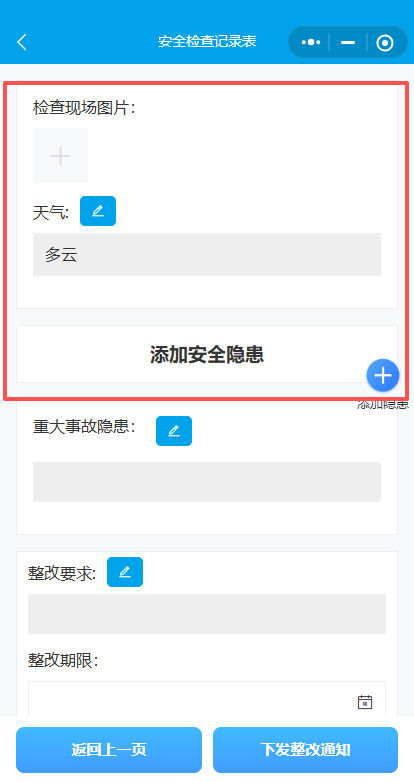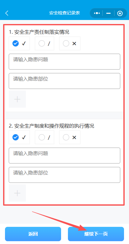 8.填写 14 个专项后,点击加号添加安全隐患