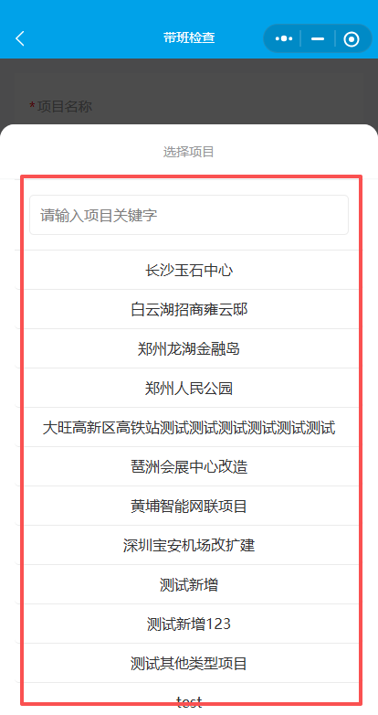 3.点开项目名称,可以输入项目关键字快速寻找项目。