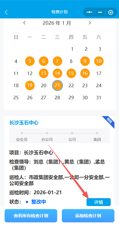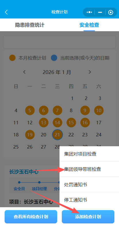 2.点击添加检查计划创建检查计划-集团领导带班检查