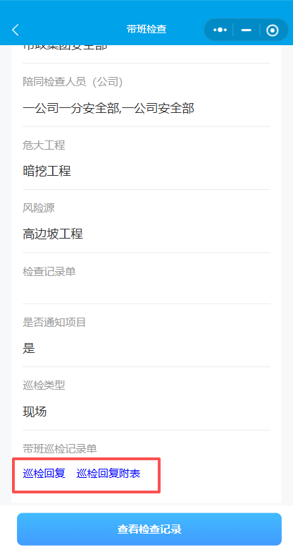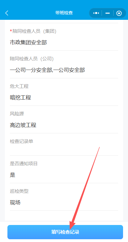 7.创建后,点击填写检查记录