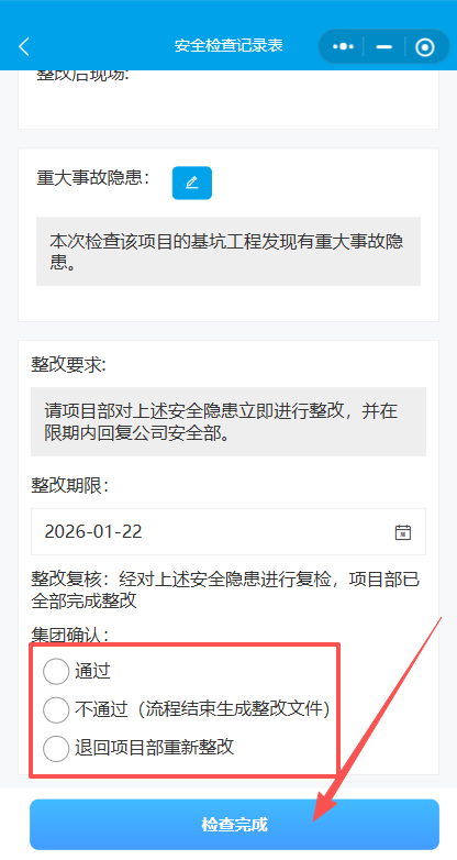 15.集团确认选择整改复核结果。