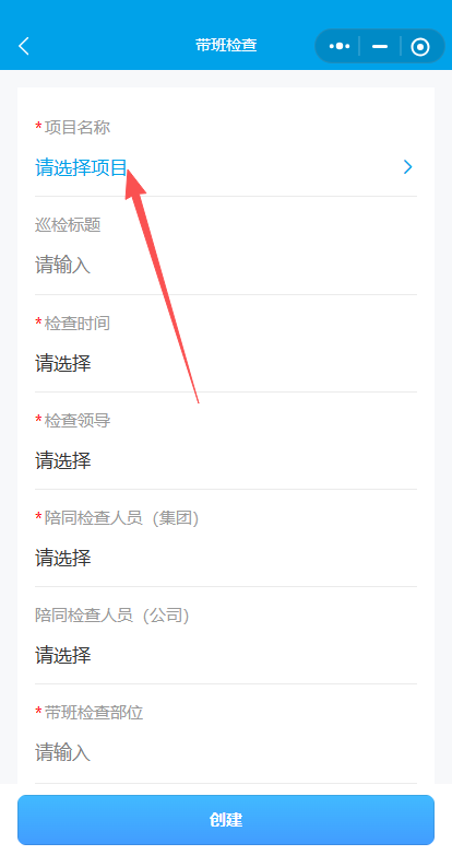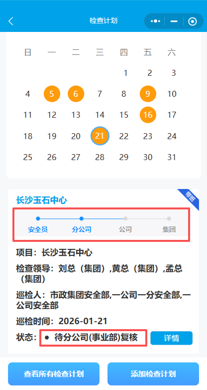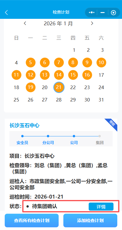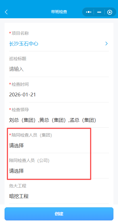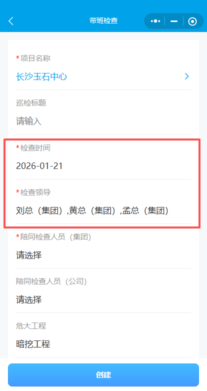 4.选择检查时间与检查领导 (集团领导)。