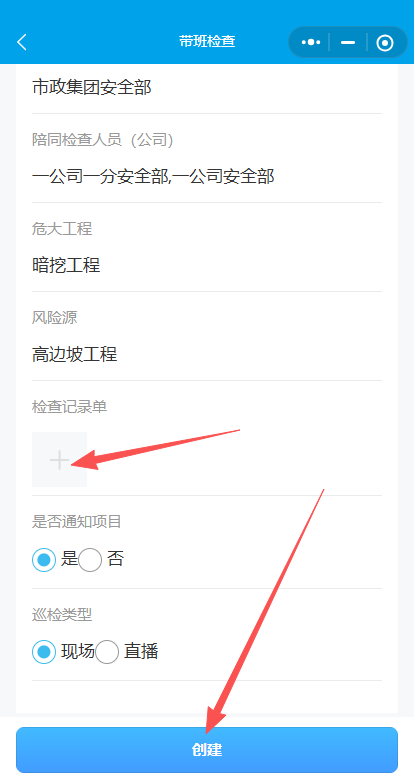 6.上传检查记录单,点击创建