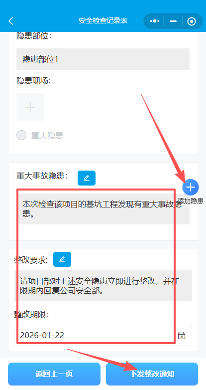 10.填写整改要求,选择整改期限,点下发整改通知。