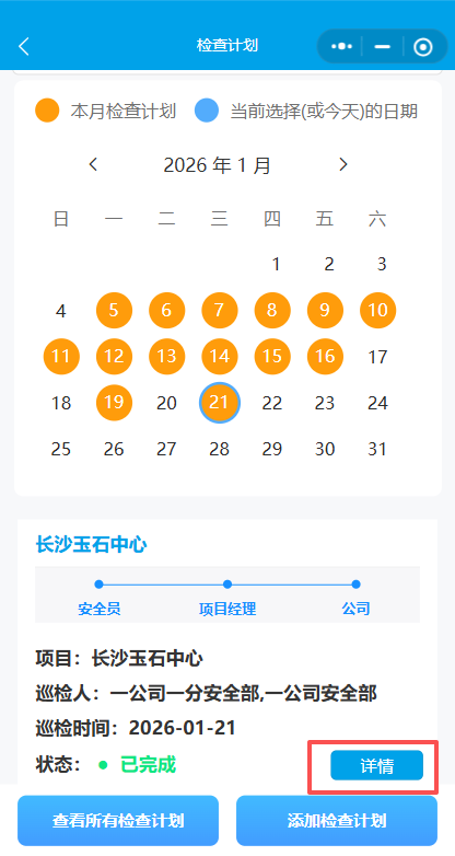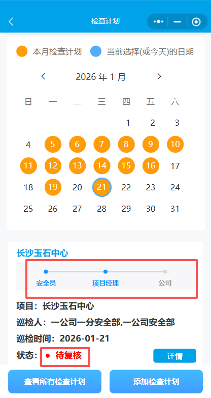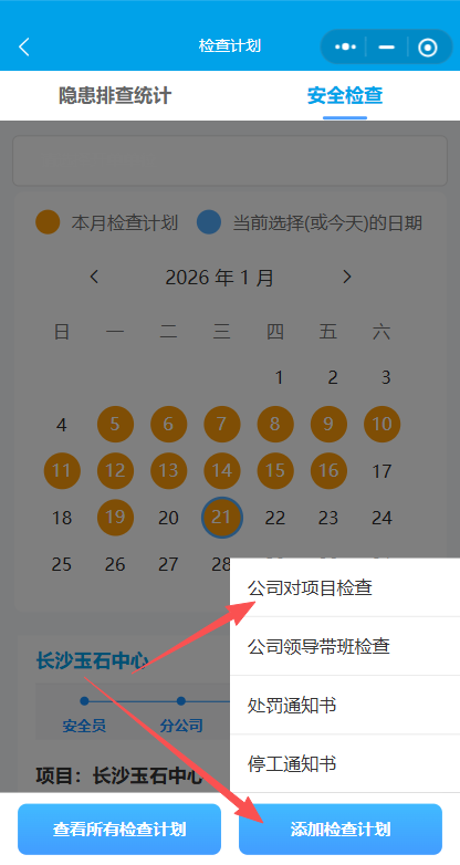 2.点击添加检查计划-公司对项目的检查,创建检查。