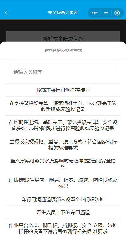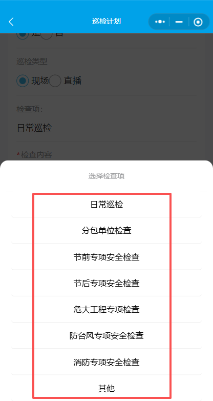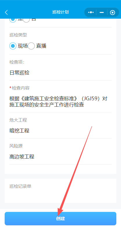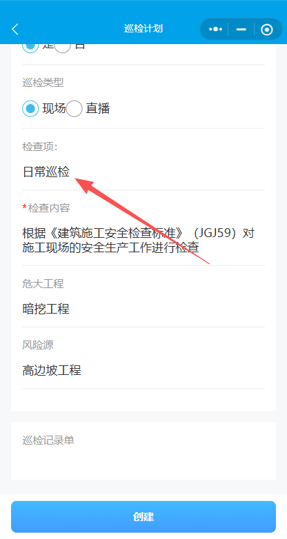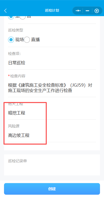 6.若该项目涉及危大工程、风险源,可选择对应的类型添加至巡检单中。