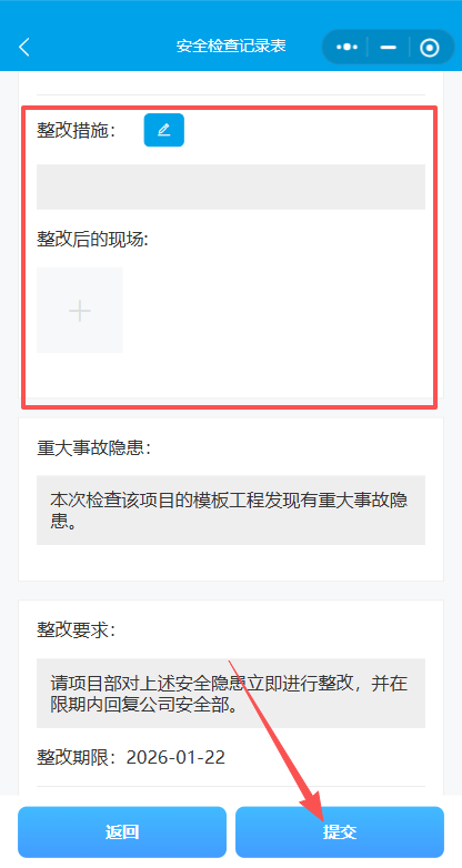 9.项目安全员对隐患进行整改并提交项目经理确认是否整改完毕。