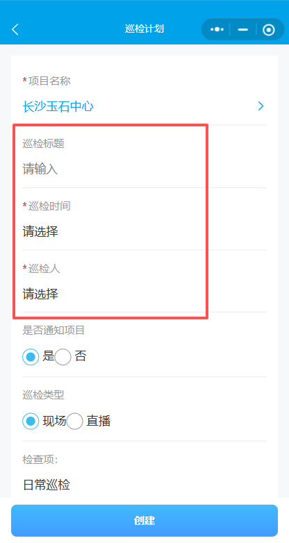4.输入检查标题,选择检查时间和巡检人(公司安全部、分公司安全部人员)