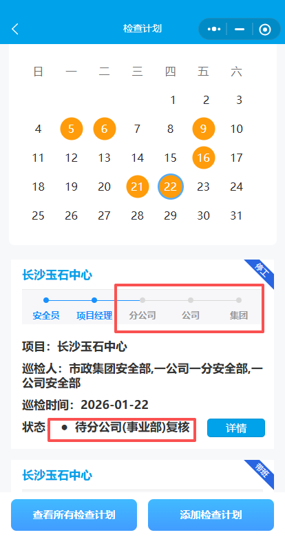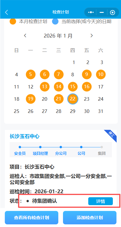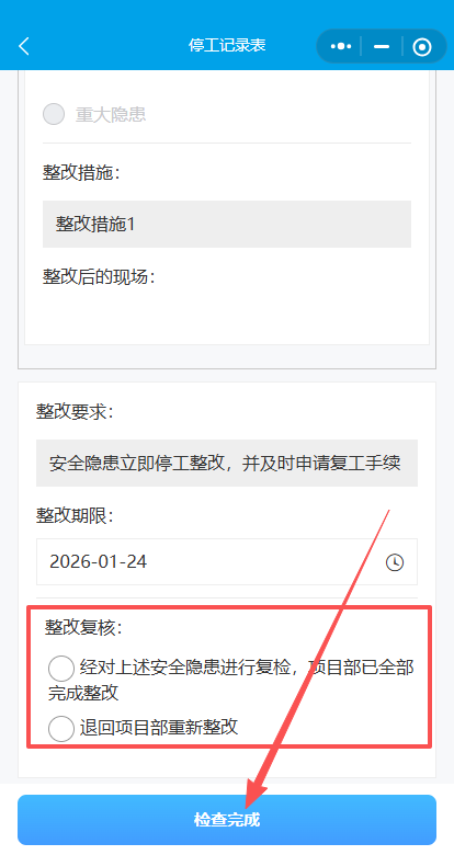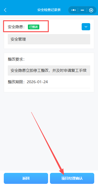 10.项目经理确认整改情况,确认后检查单变成待复核状态
