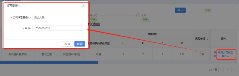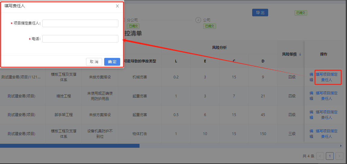 3.公司查看清单,并针对每一条危险源指令负责人,点击:公司项目指定责任人。