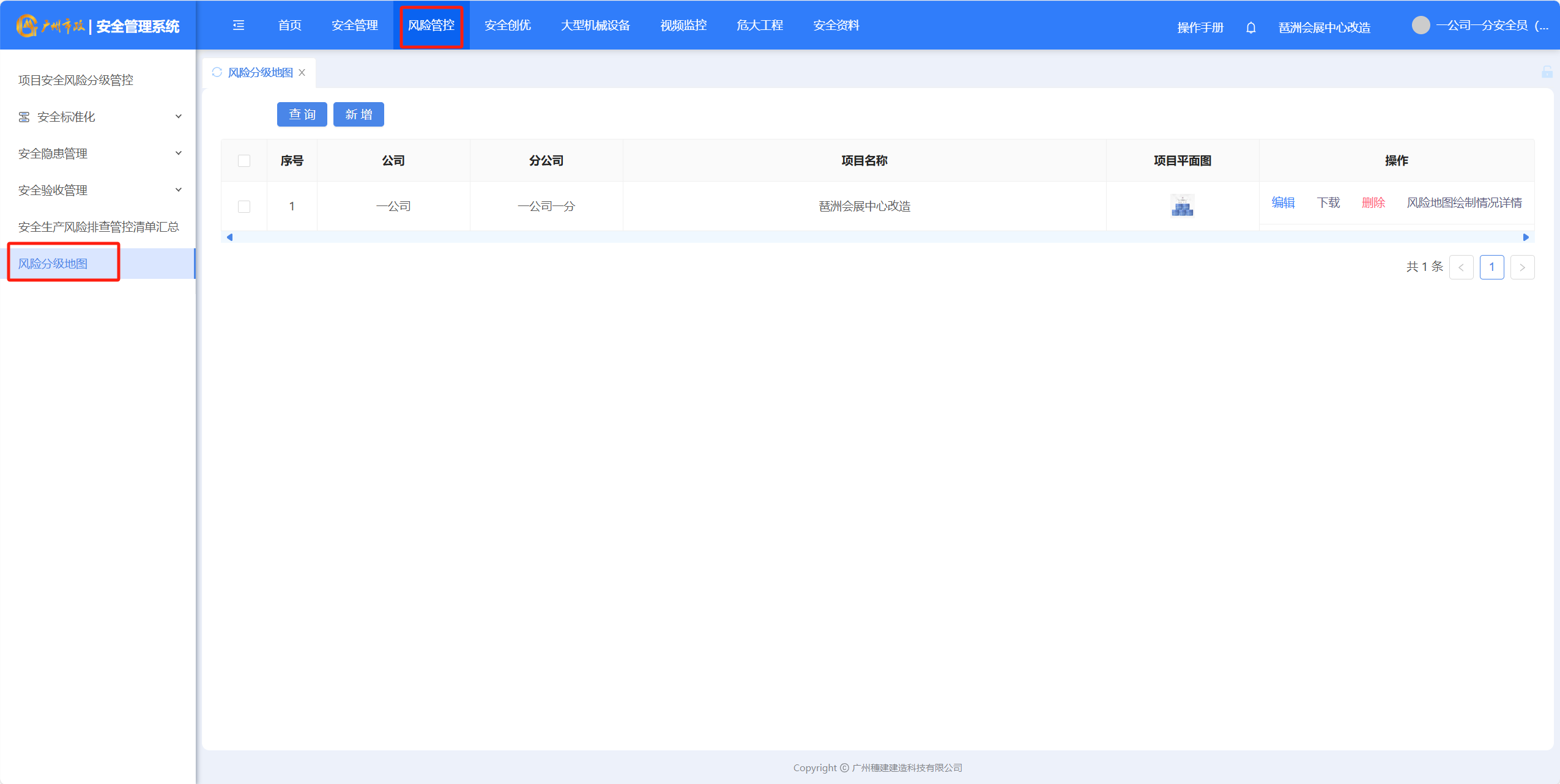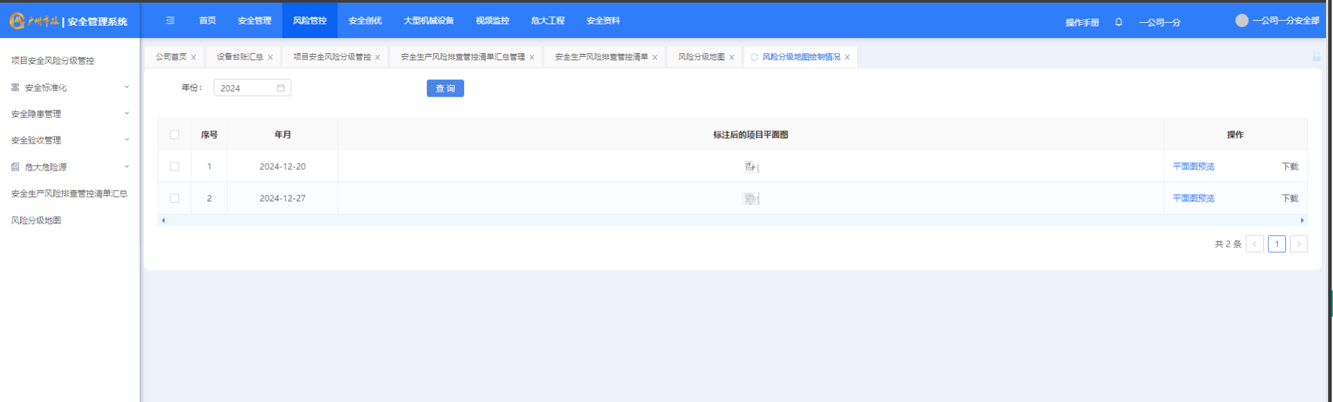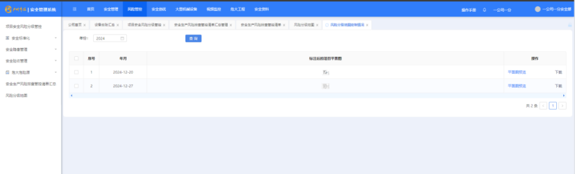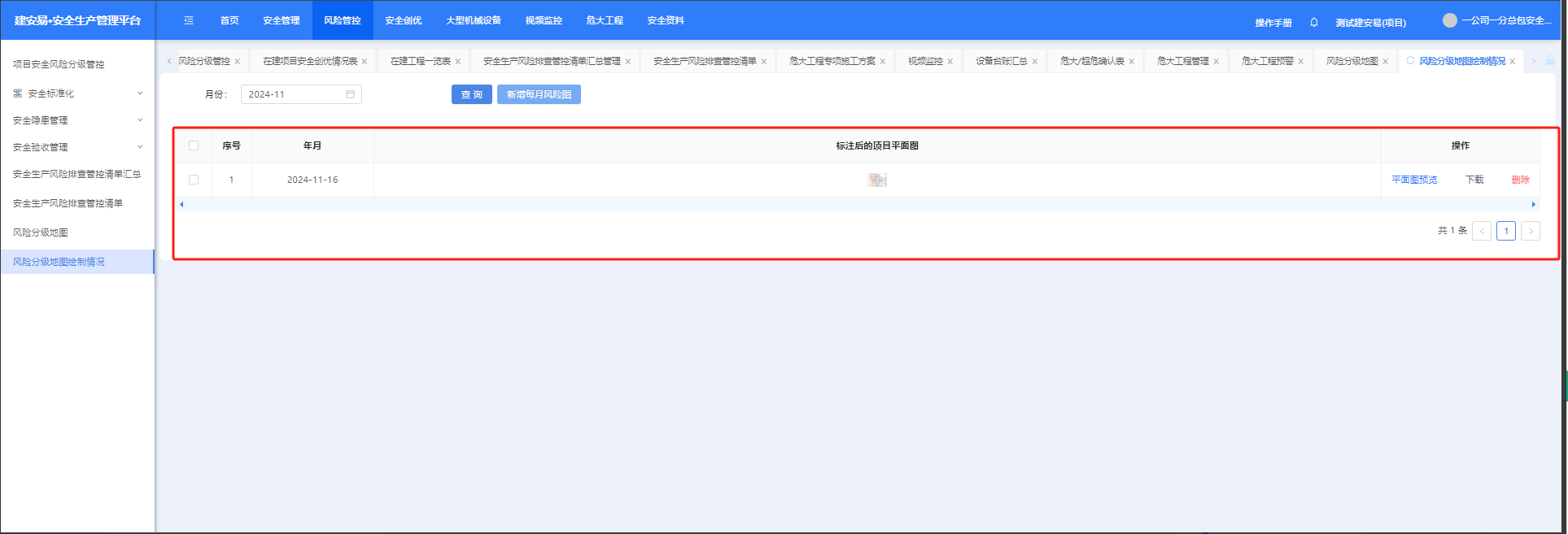 1.找到【风险管控】,左侧找【风险分级地图】查看每个项目上传的平面图。