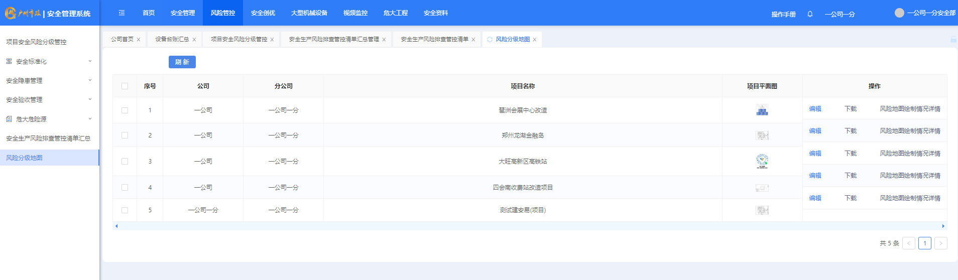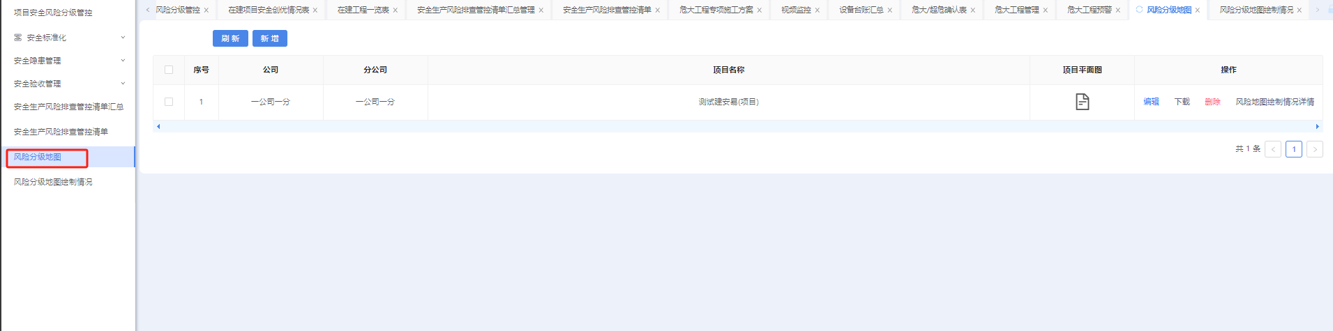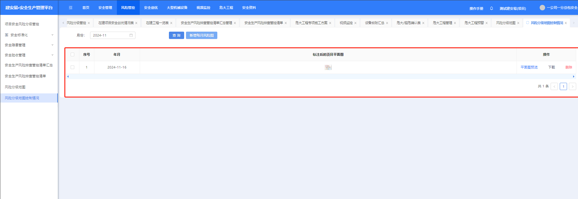 1.找到【风险管控】,左侧找【风险分级地图】查看每个项目上传的平面图。