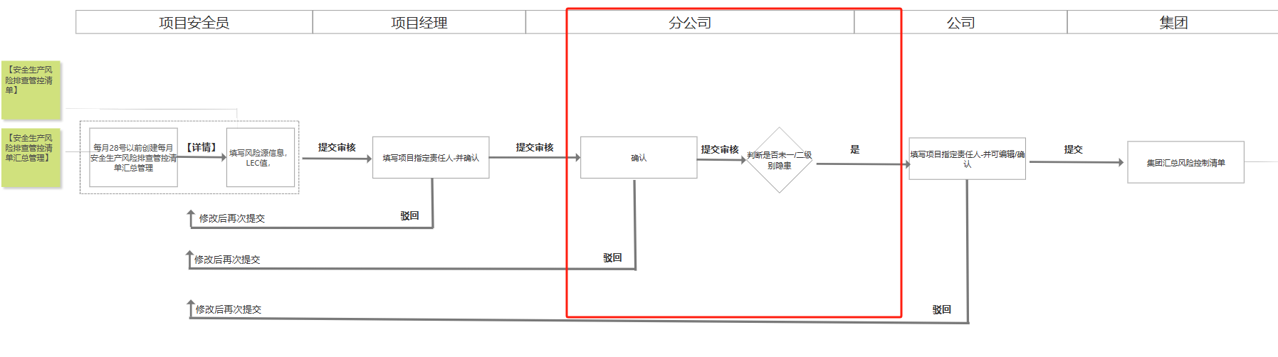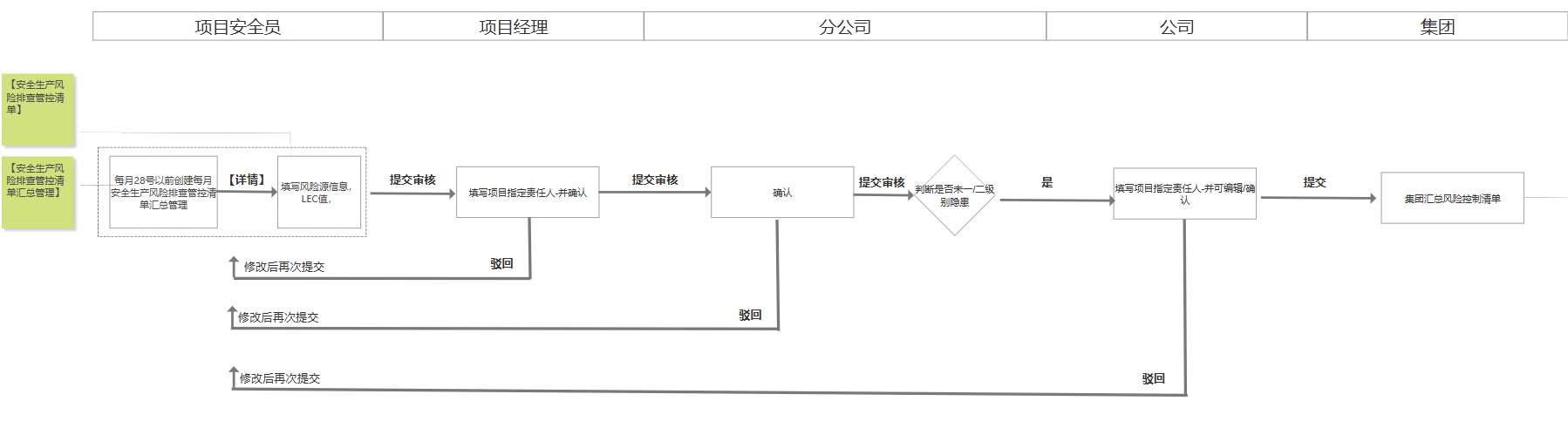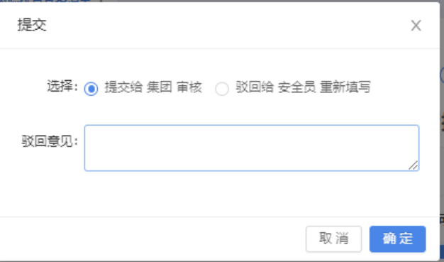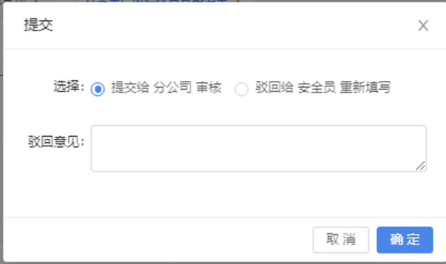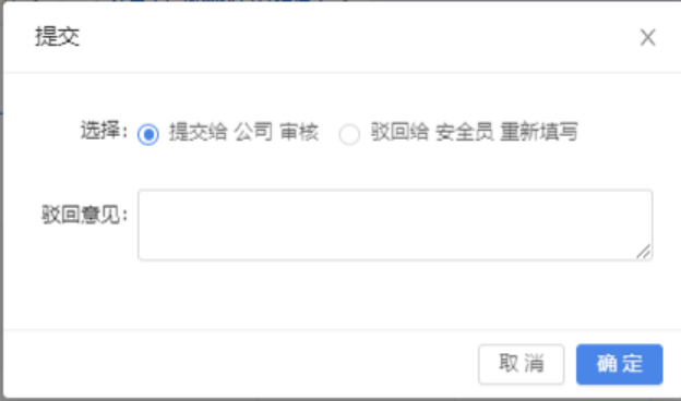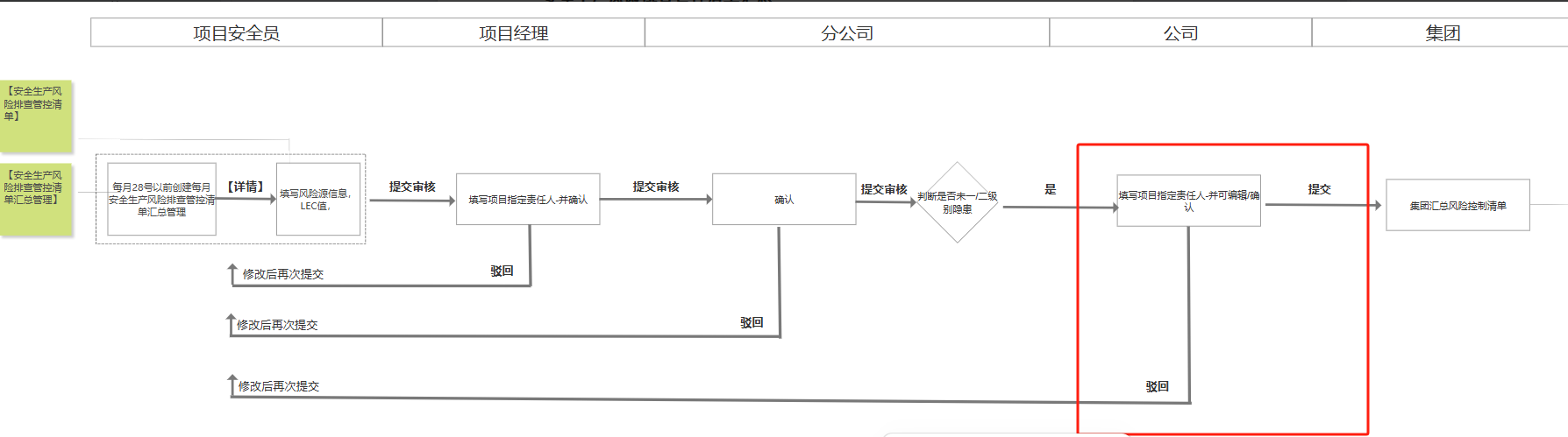 3.确认完毕后,将当月的管控清单汇总表和汇总清单一起提交给公司审核,或者填写驳回意见,驳回给安全员重新填写。(只提交一/二级风险给公司)