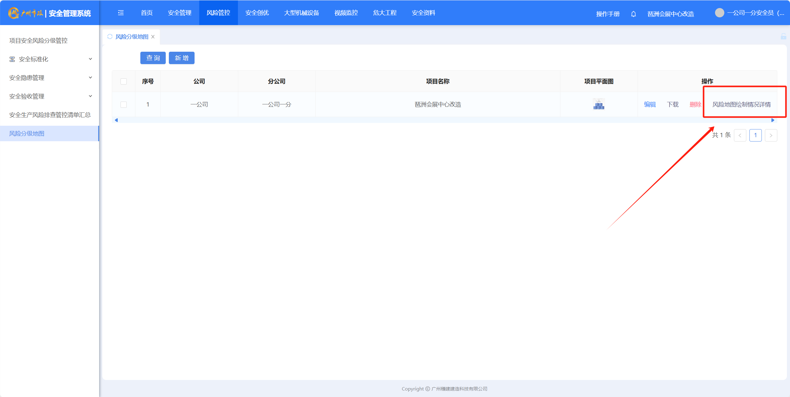 2.点击【风险地图绘制情况详情】,查看每个项目的风险分级地图的绘制情况。