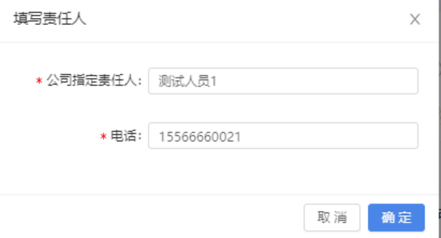 7.提交确认后,公司确认人的姓名和电话将自动带入到【公司级确认责任人】处。