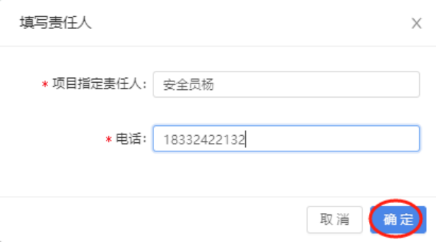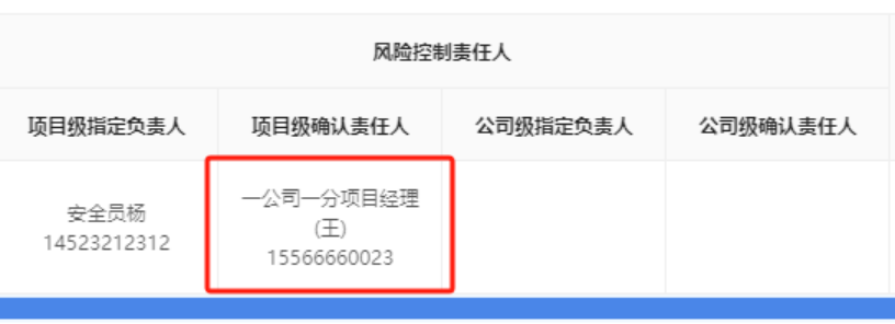 7.项目经理提交确认后,项目经理的姓名和电话将自动带入到【项目级确认责任人】处。