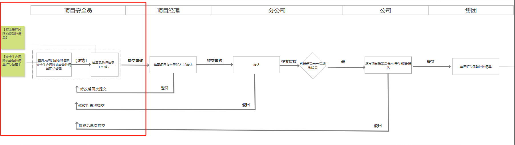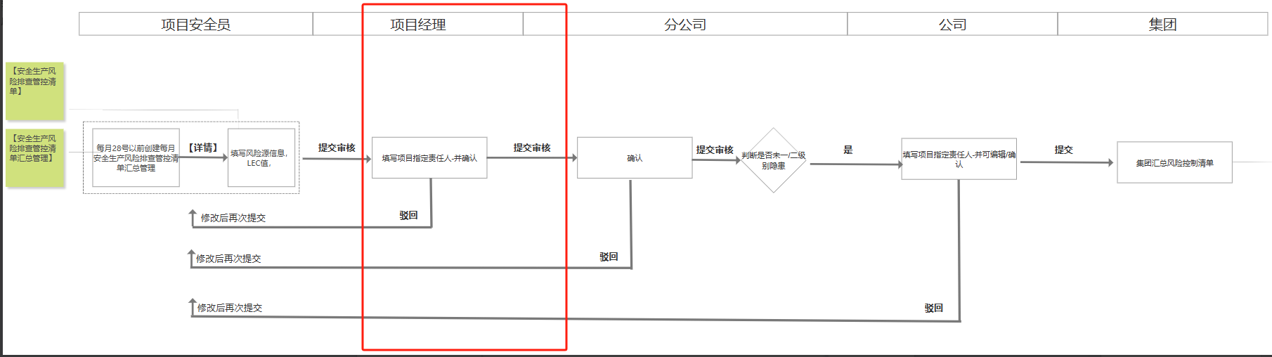 - 项目部层级:每月28日前,项目部安全员根据实际情况做好下个月的《安全生产危险源辨识与风险分级管控清单》填报。
