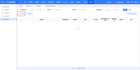 (1)手动登记需要安全员账号打开“资料库”-“班前教育资料”,点击“新增”