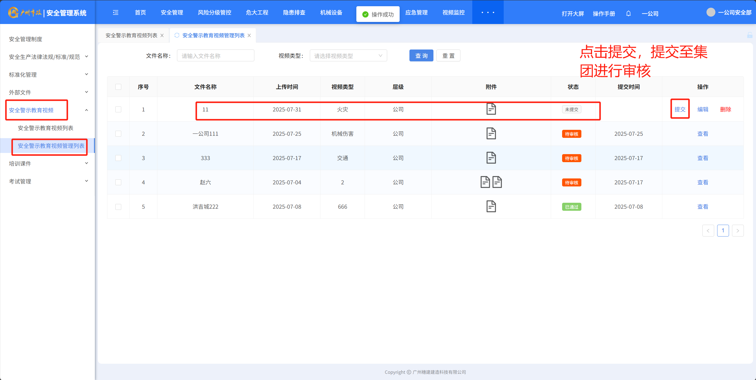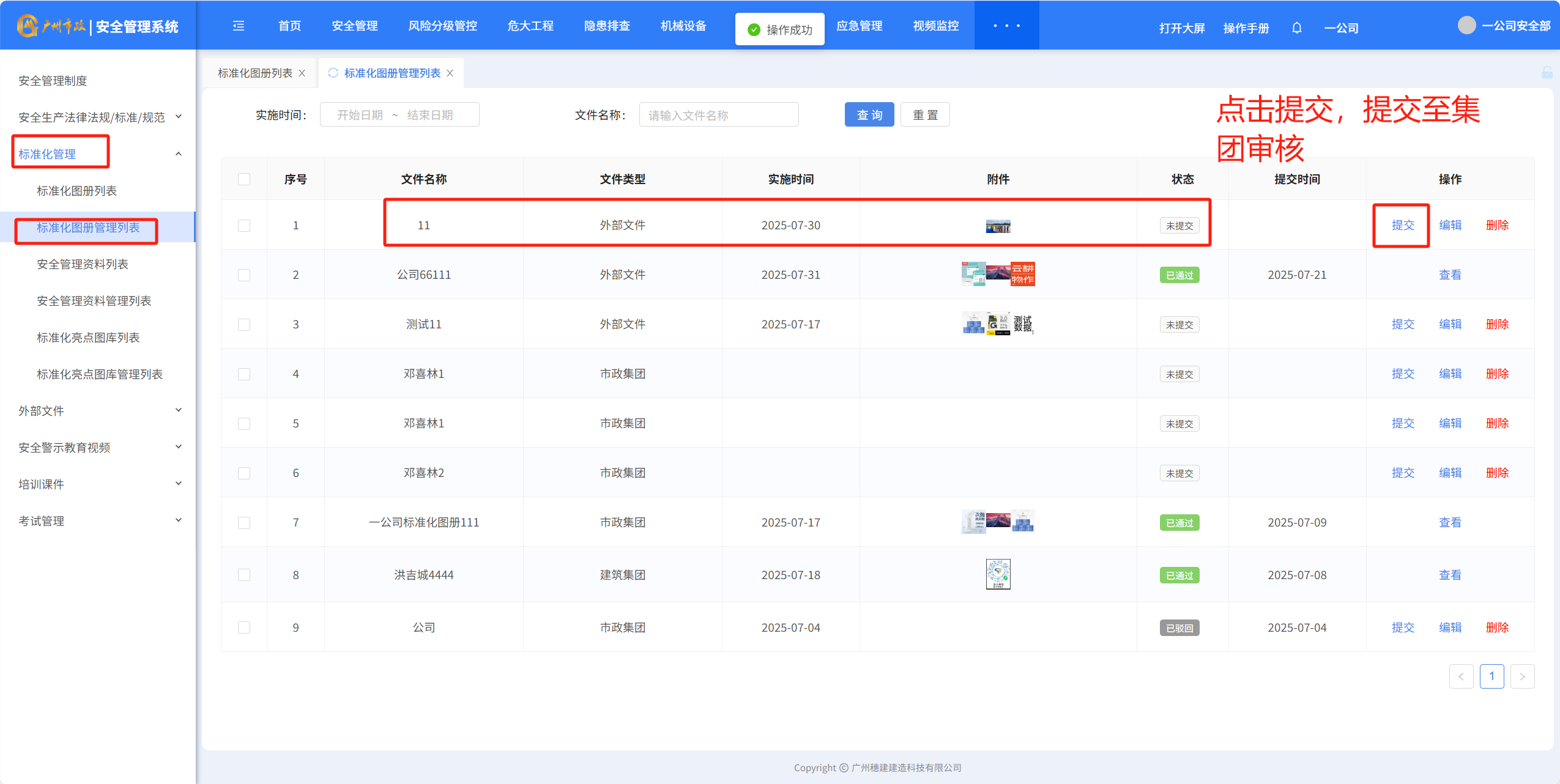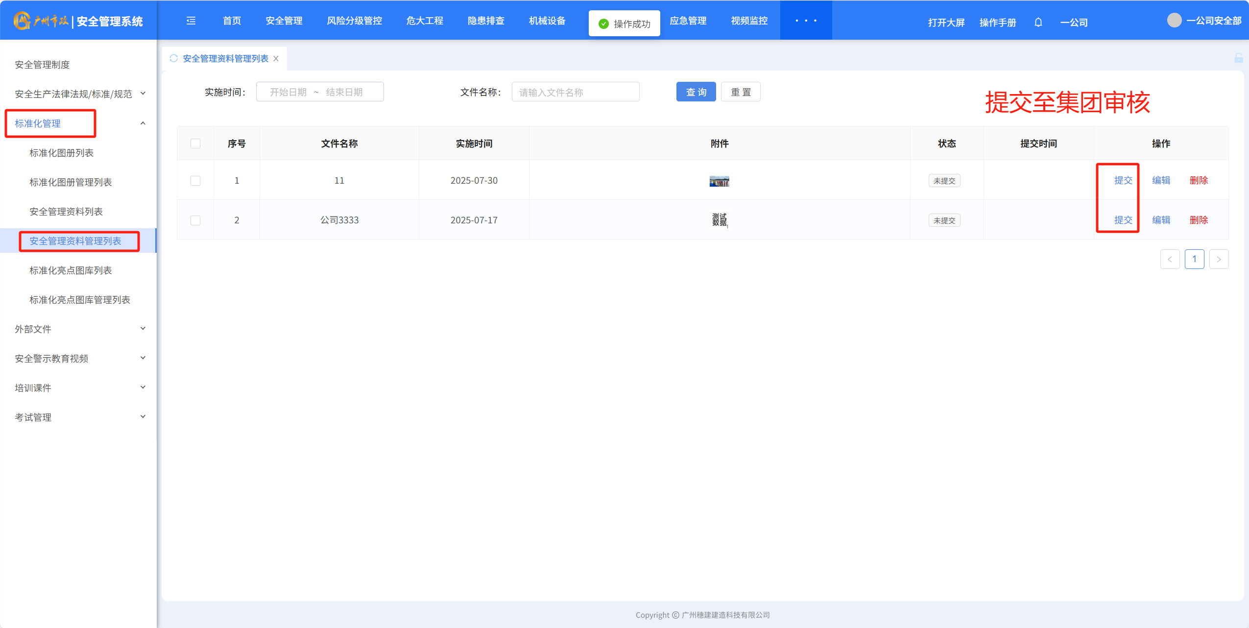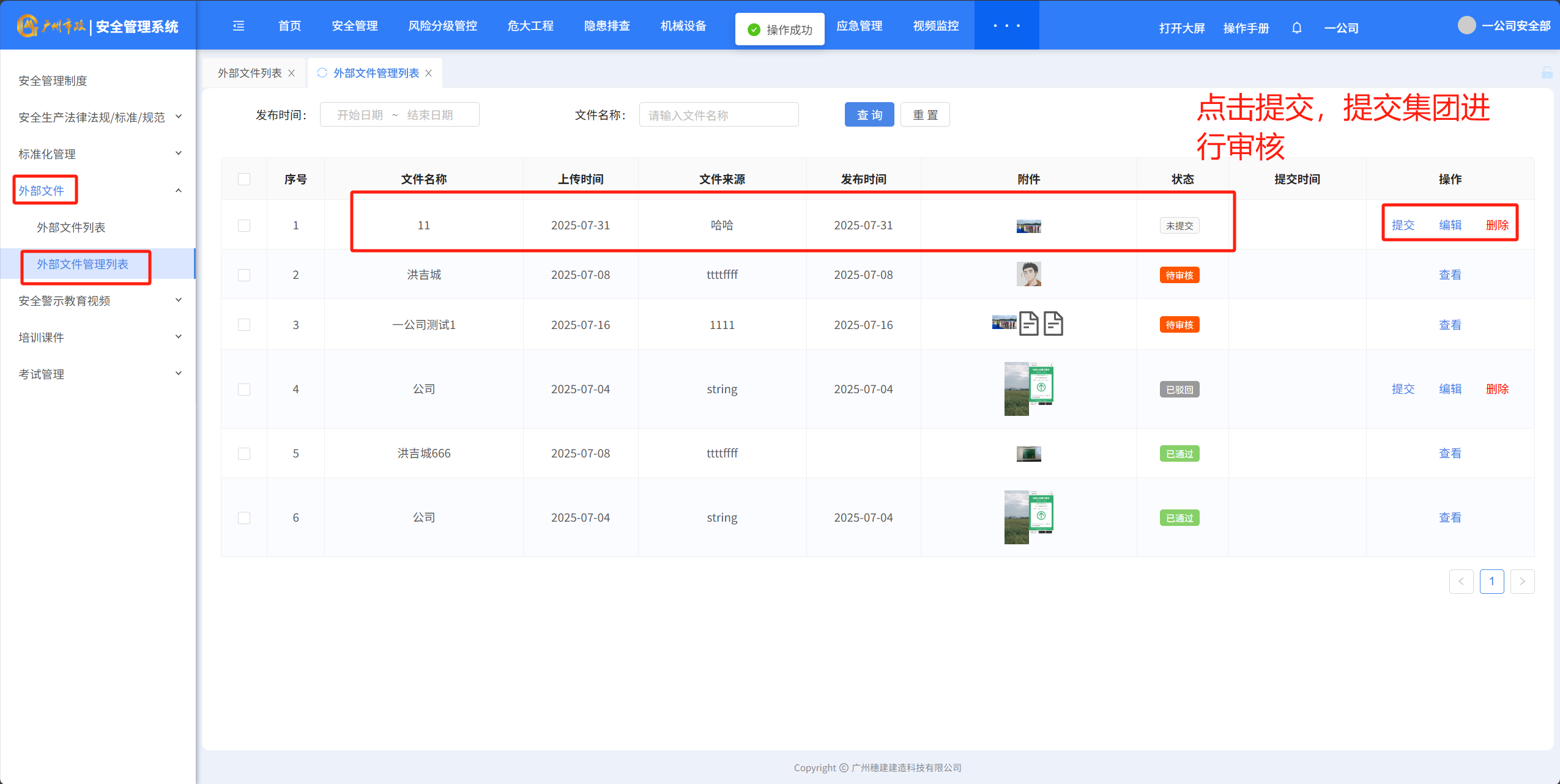 公司安管部提交后需集团安管部审核,通过后公司、分公司、项目都可查看和下载资料。
