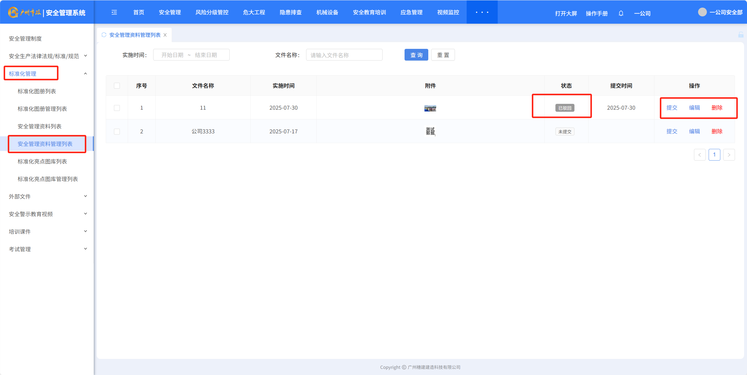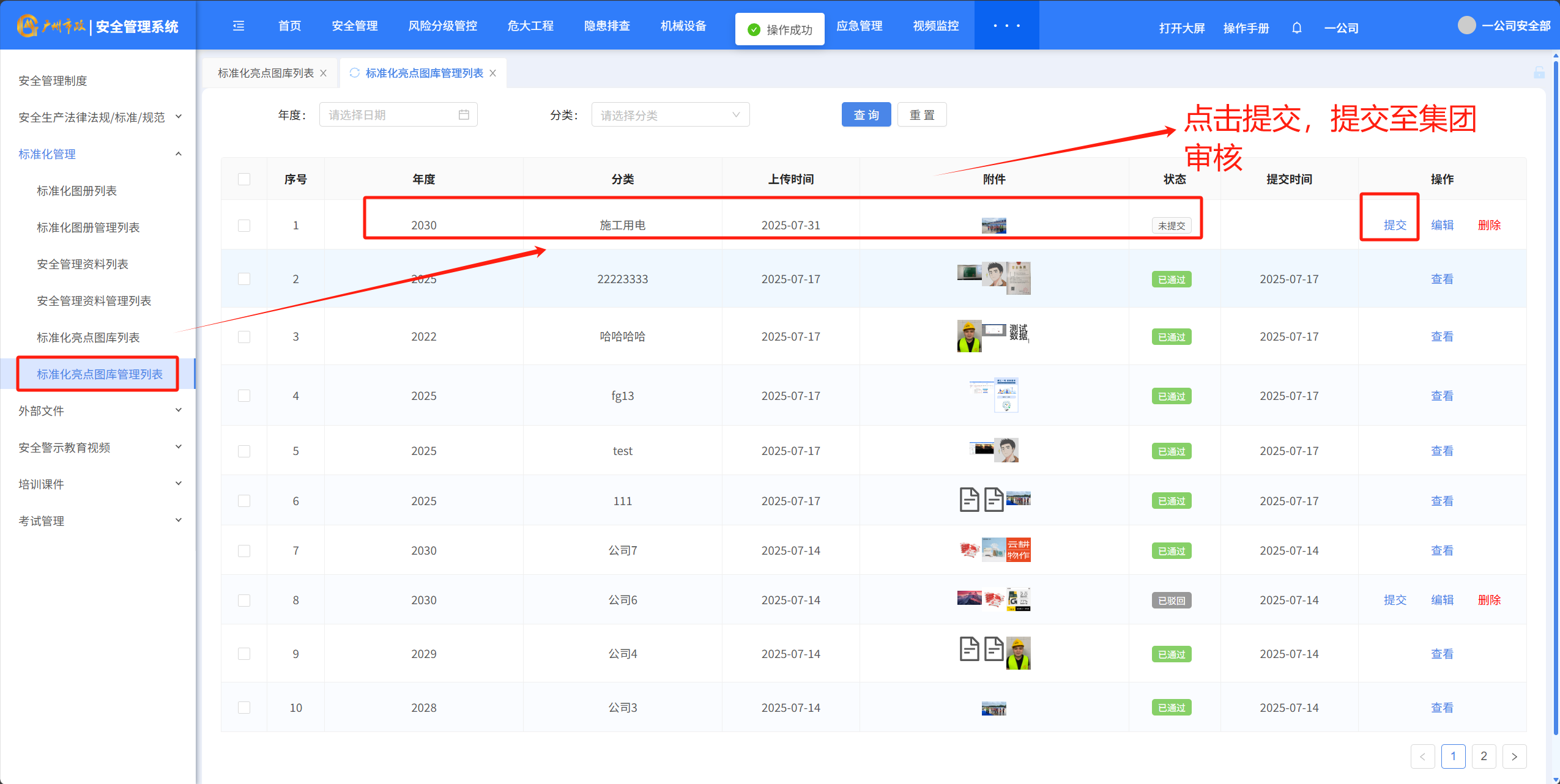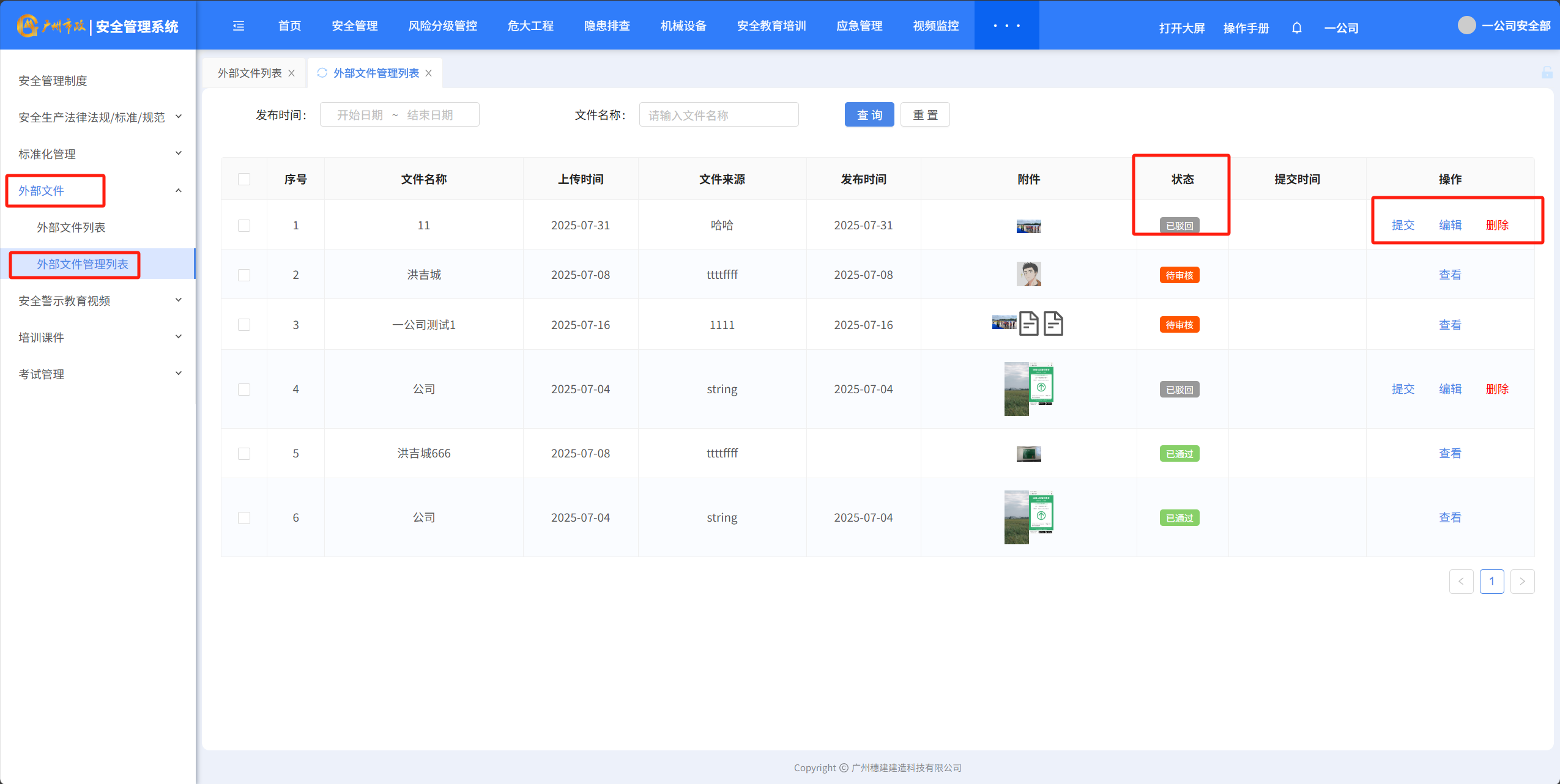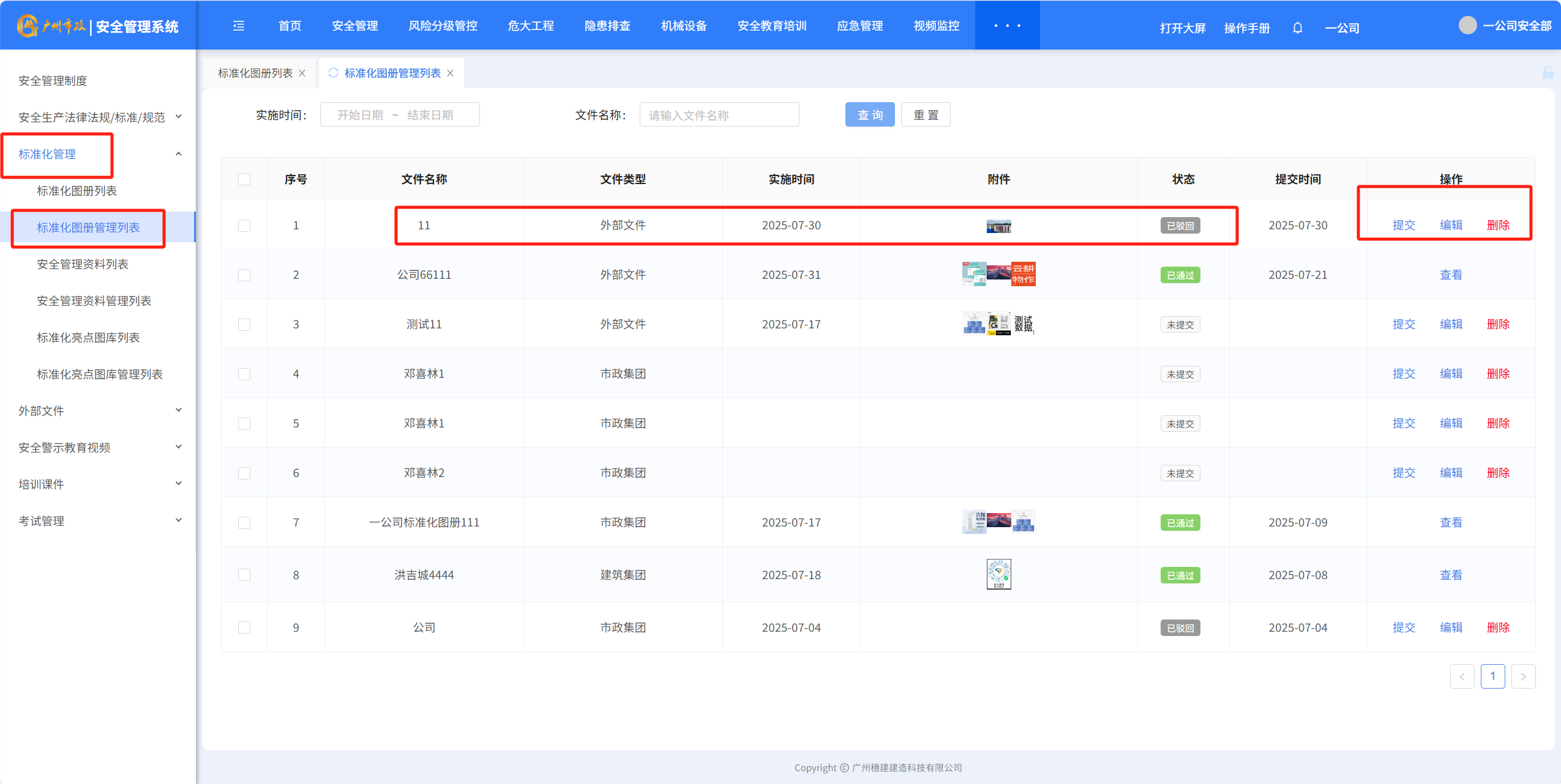 公司安管部提交后需集团安管部审核,通过后公司、分公司、项目都可查看和下载资料。