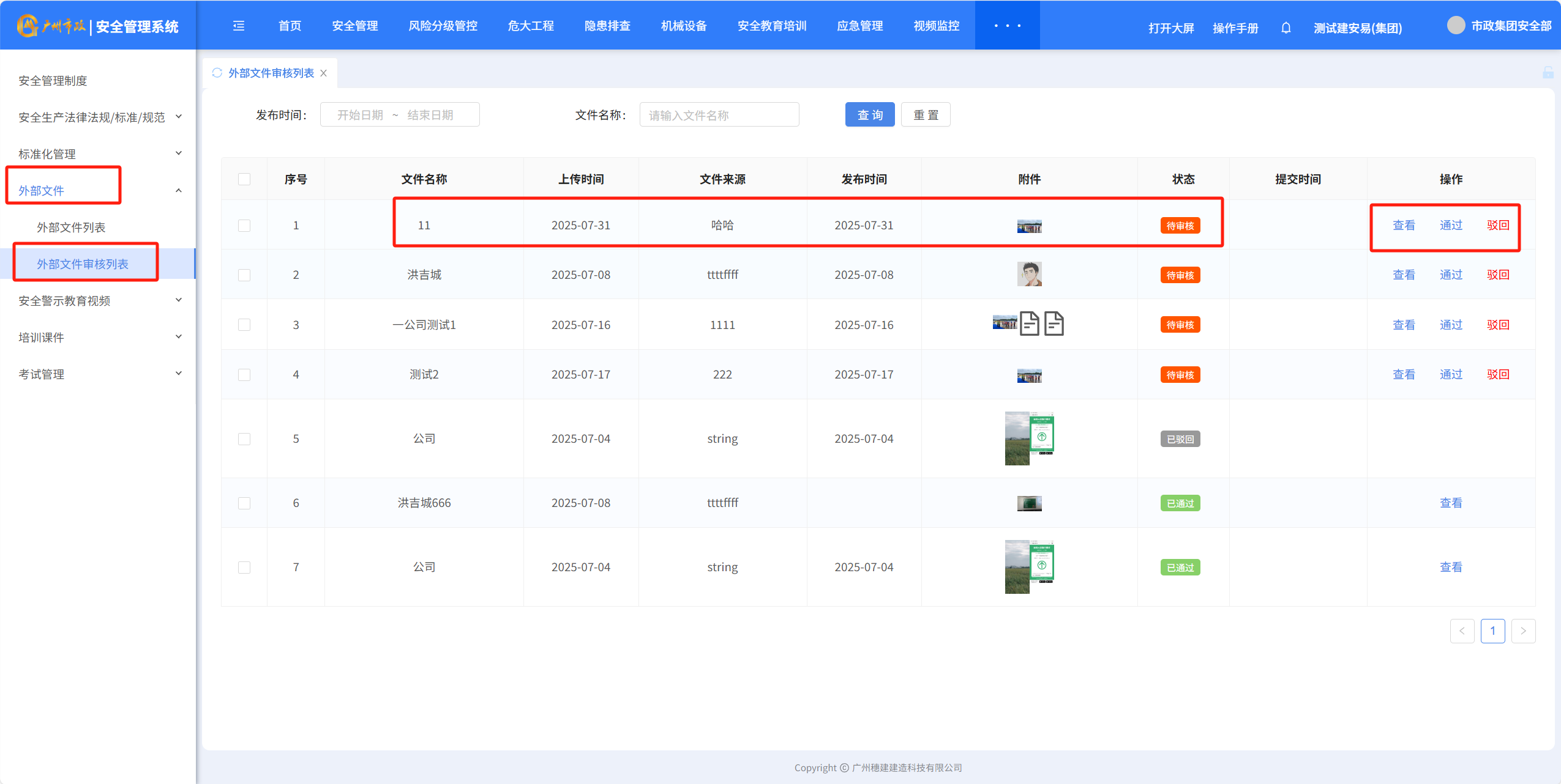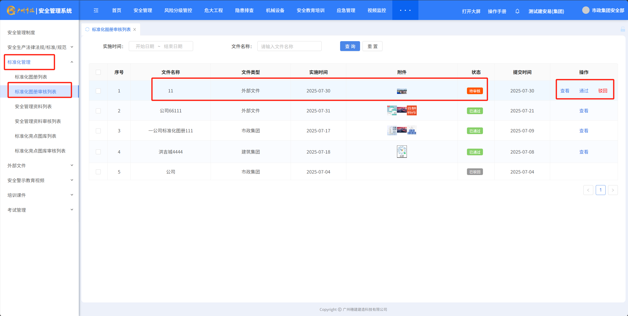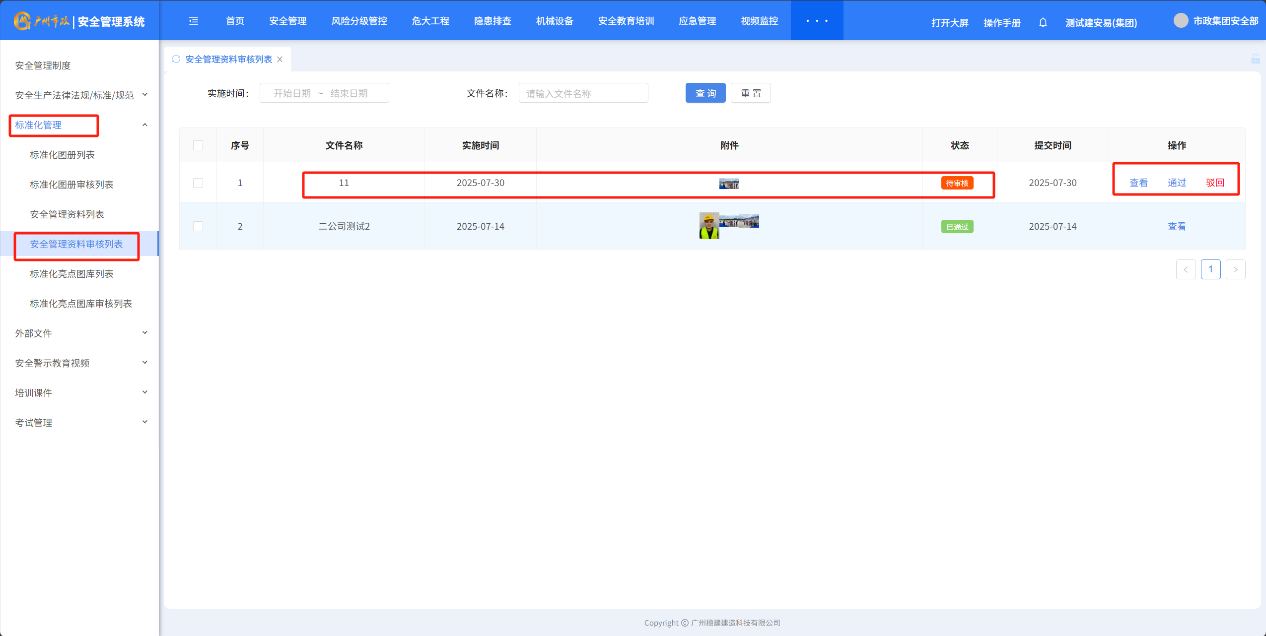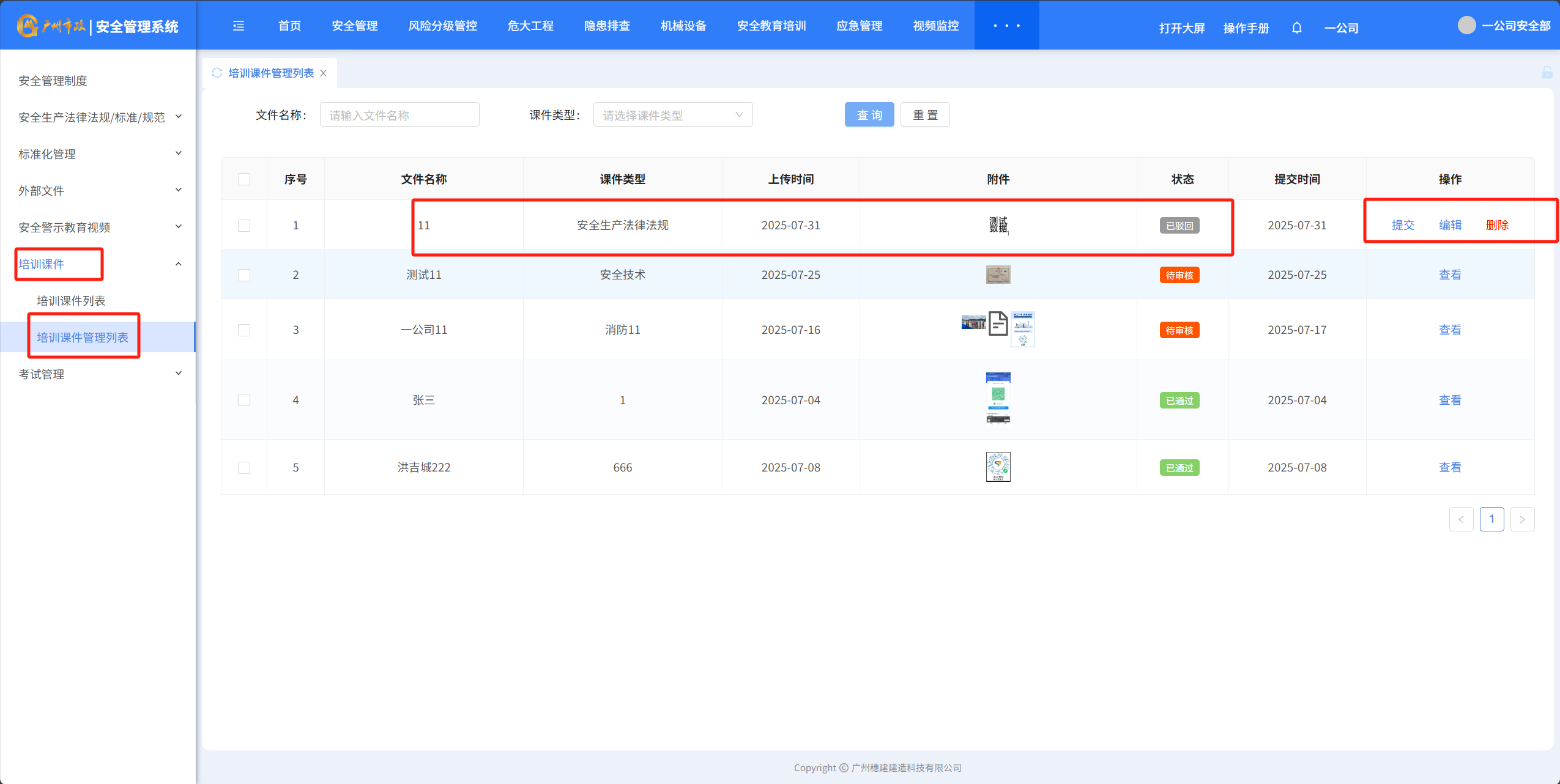 公司安管部提交后需集团安管部审核,通过后公司、分公司、项目都可查看和下载资料。