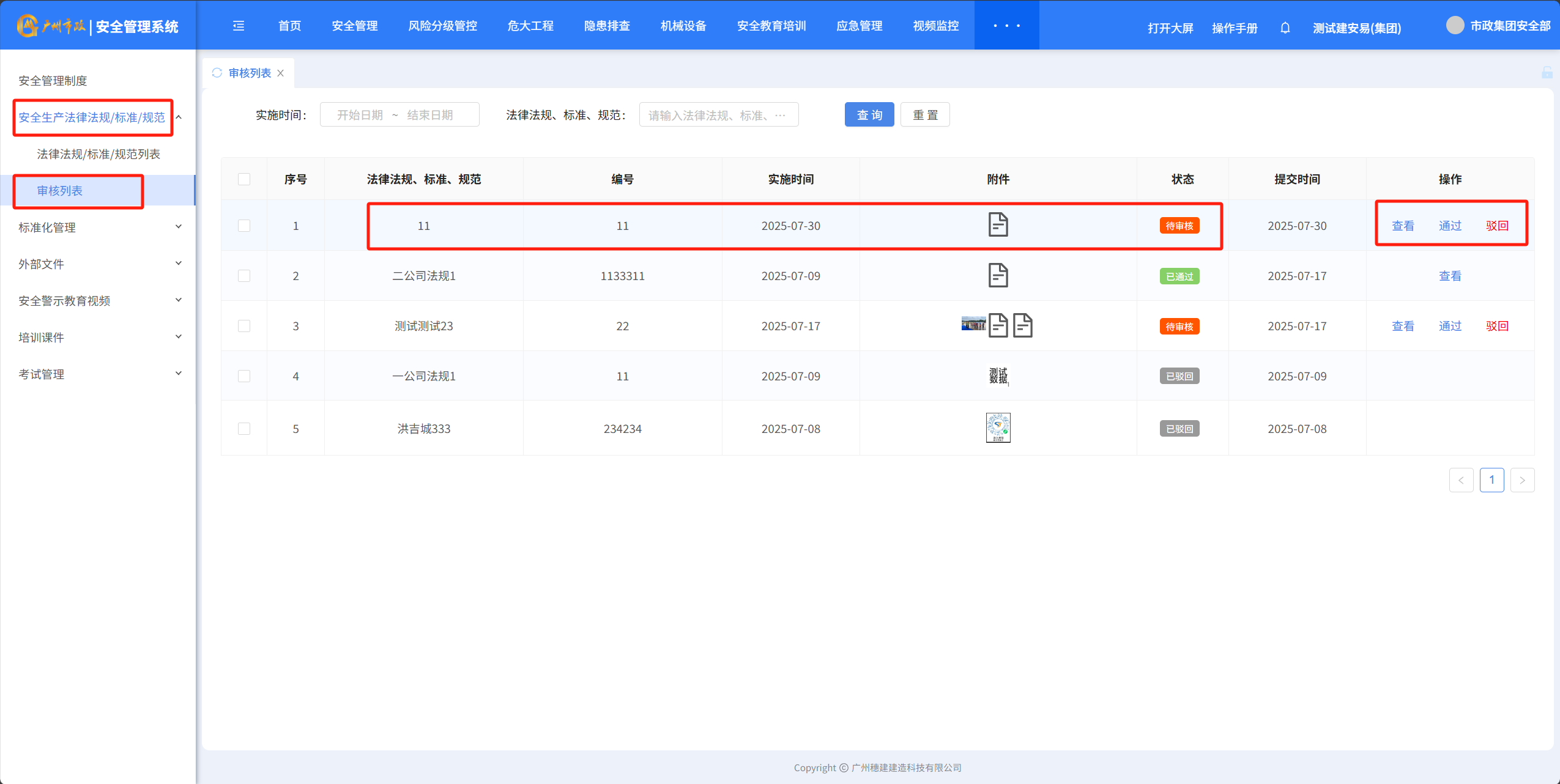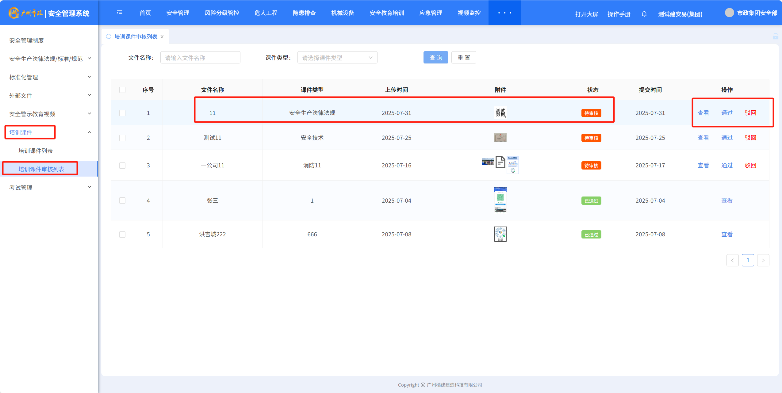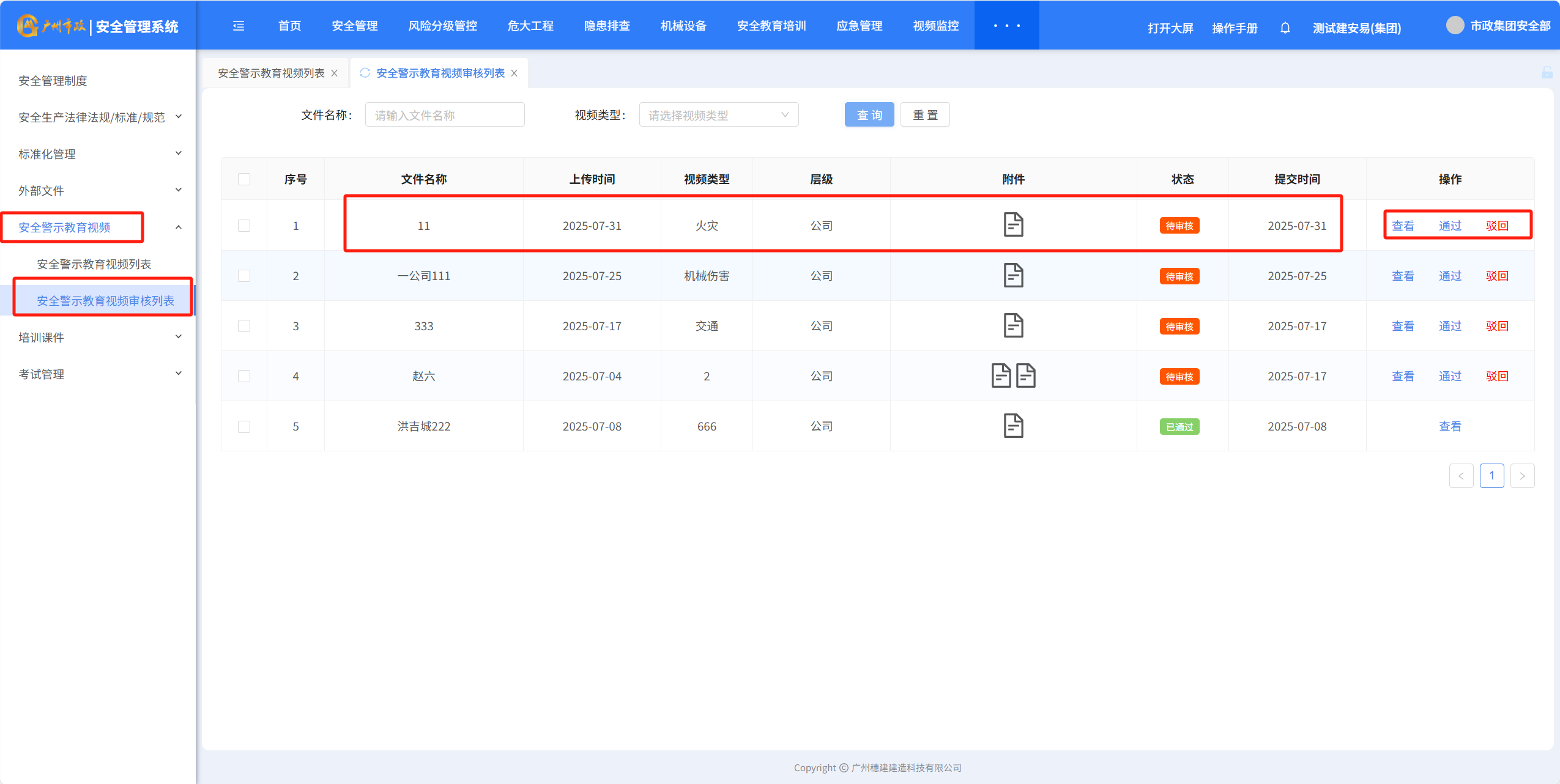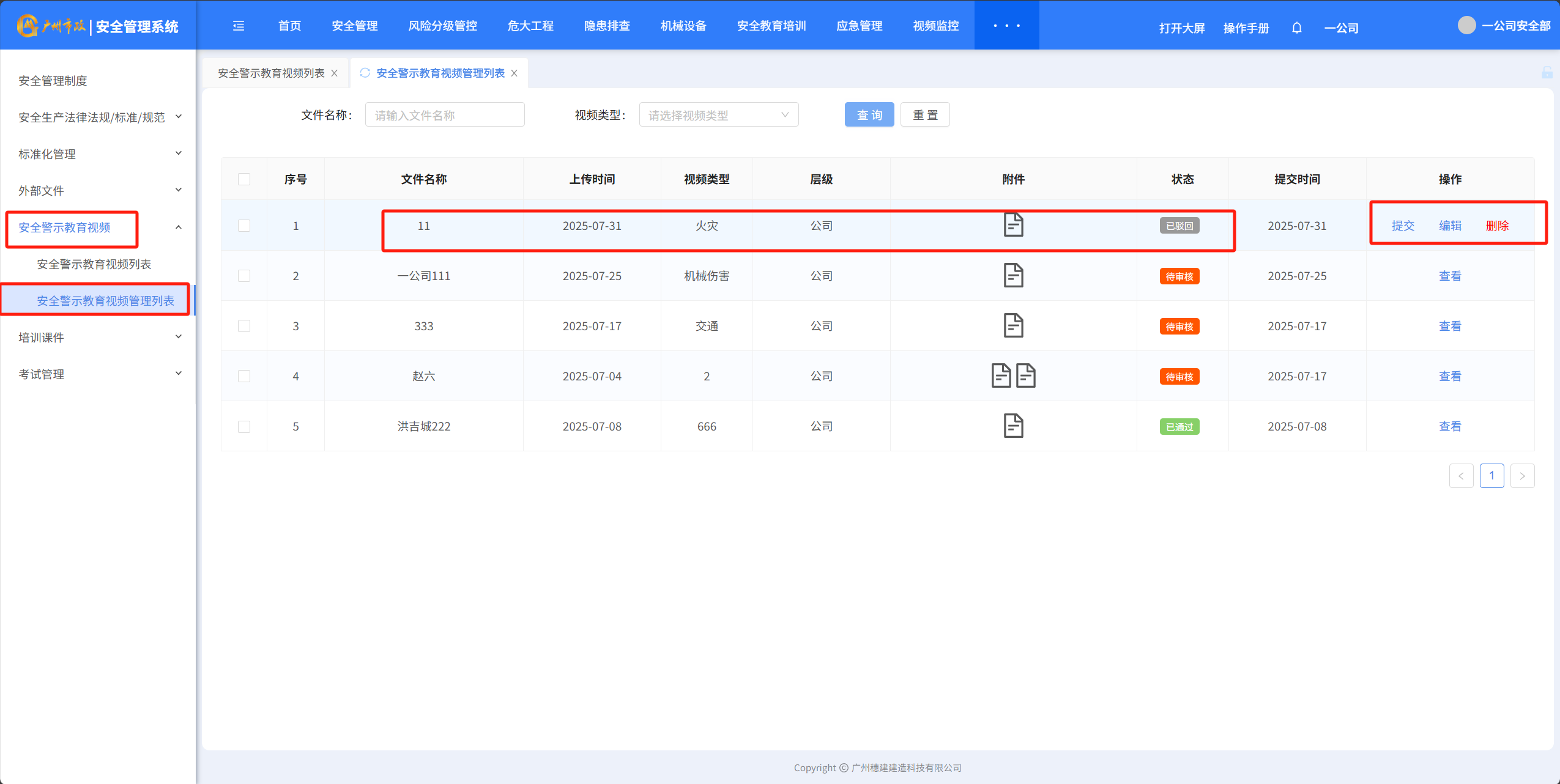 公司安管部提交后需集团安管部审核,通过后公司、分公司、项目都可查看和下载资料。