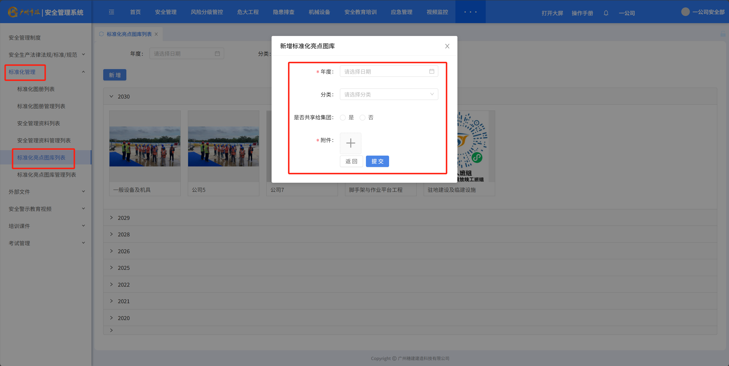 公司在上传时选择是否共享到集团,选择“是”提交至集团安管部审核,通过后展示,选择“否”只在公司范围内可查看。
