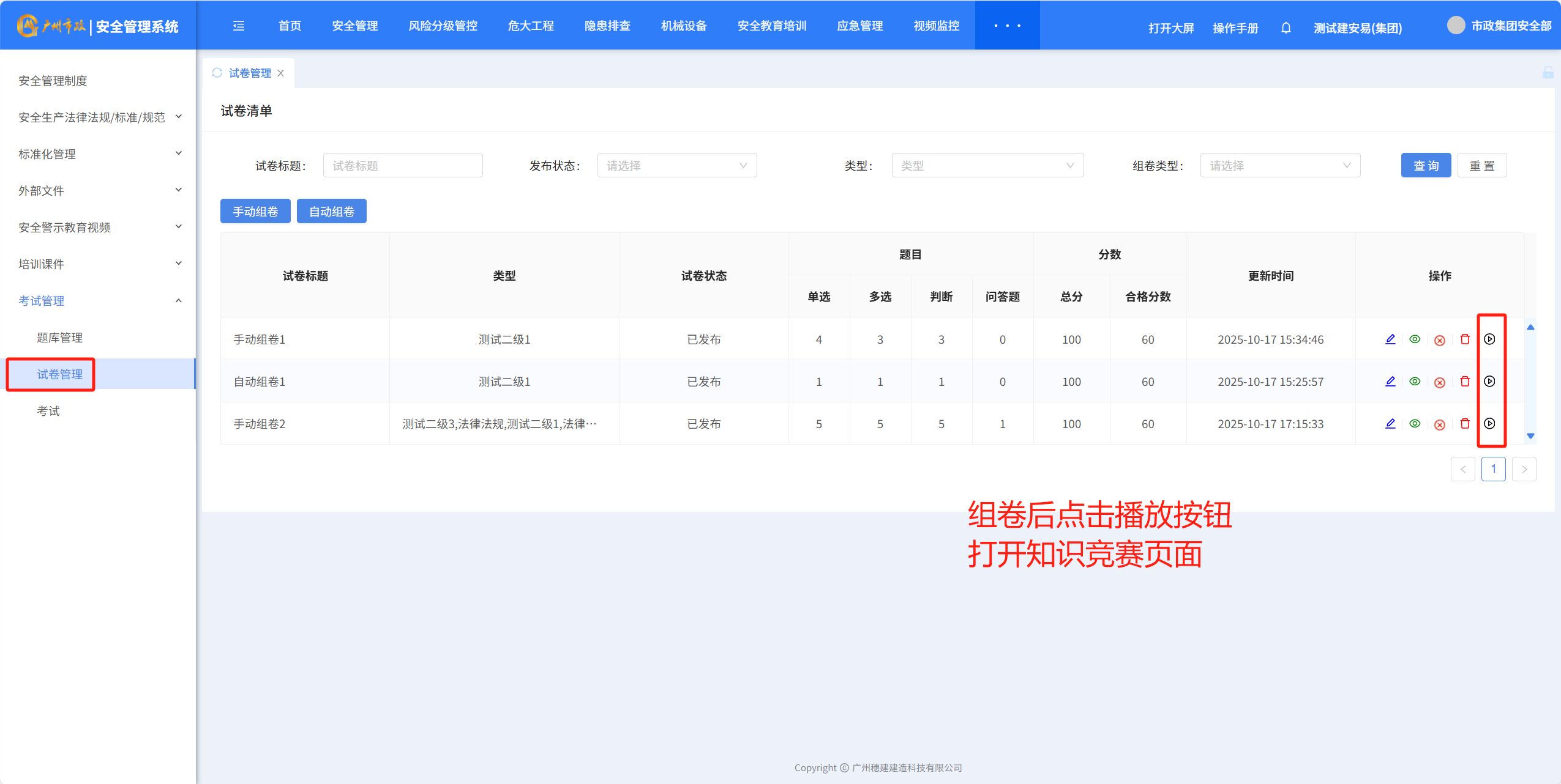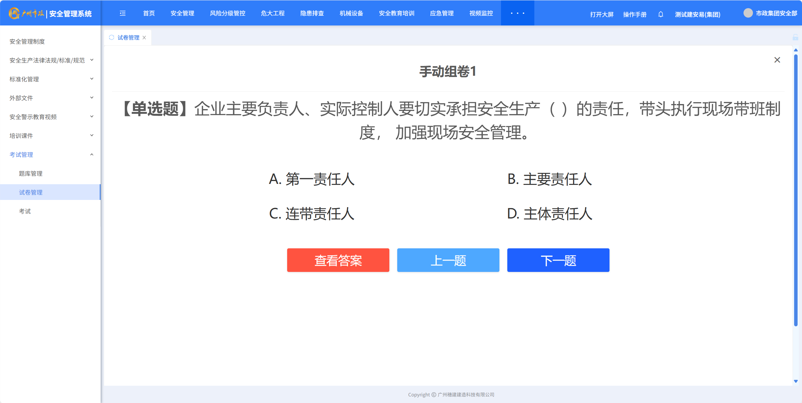 集团、公司都可组卷(单独库),支持手动组卷和自定组卷两种方式。