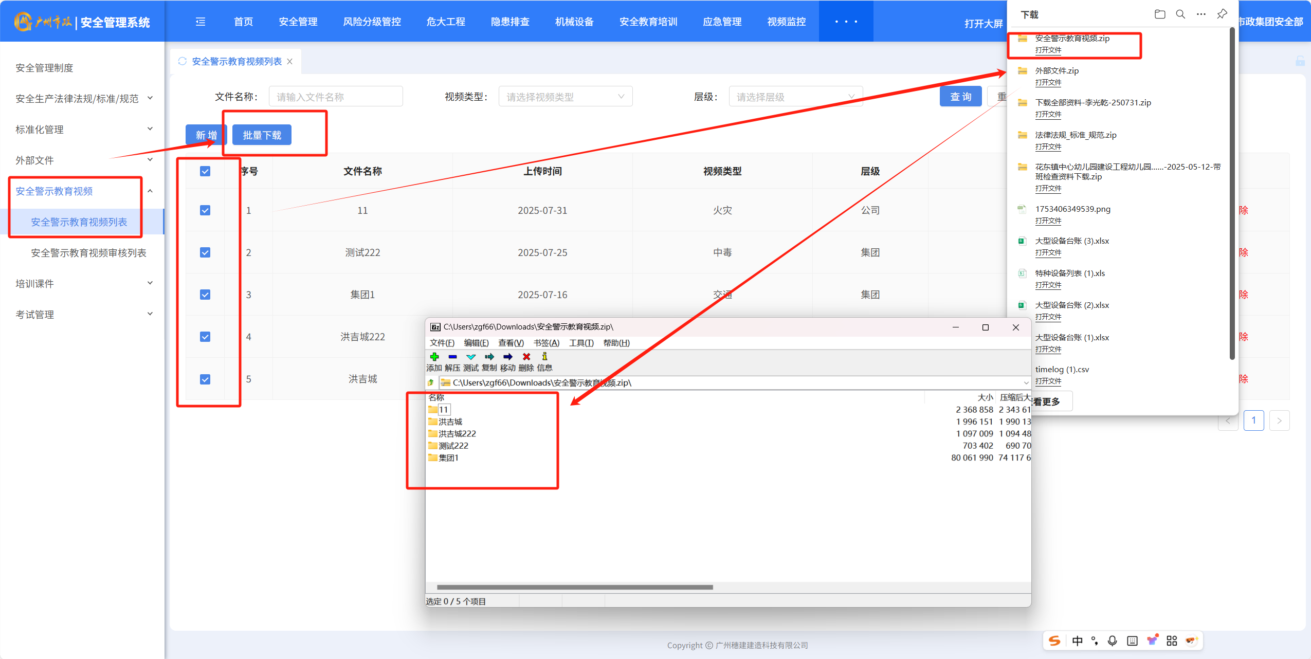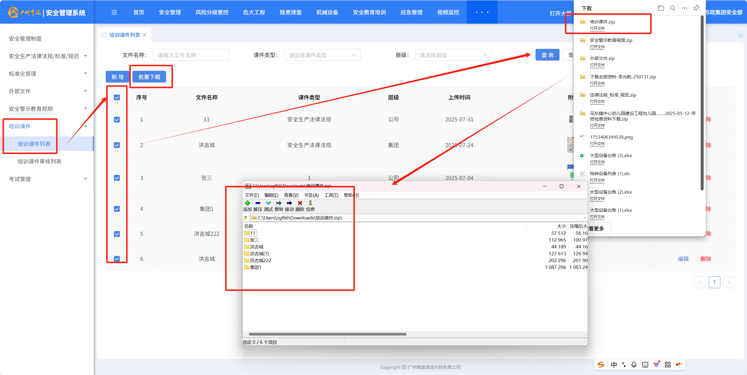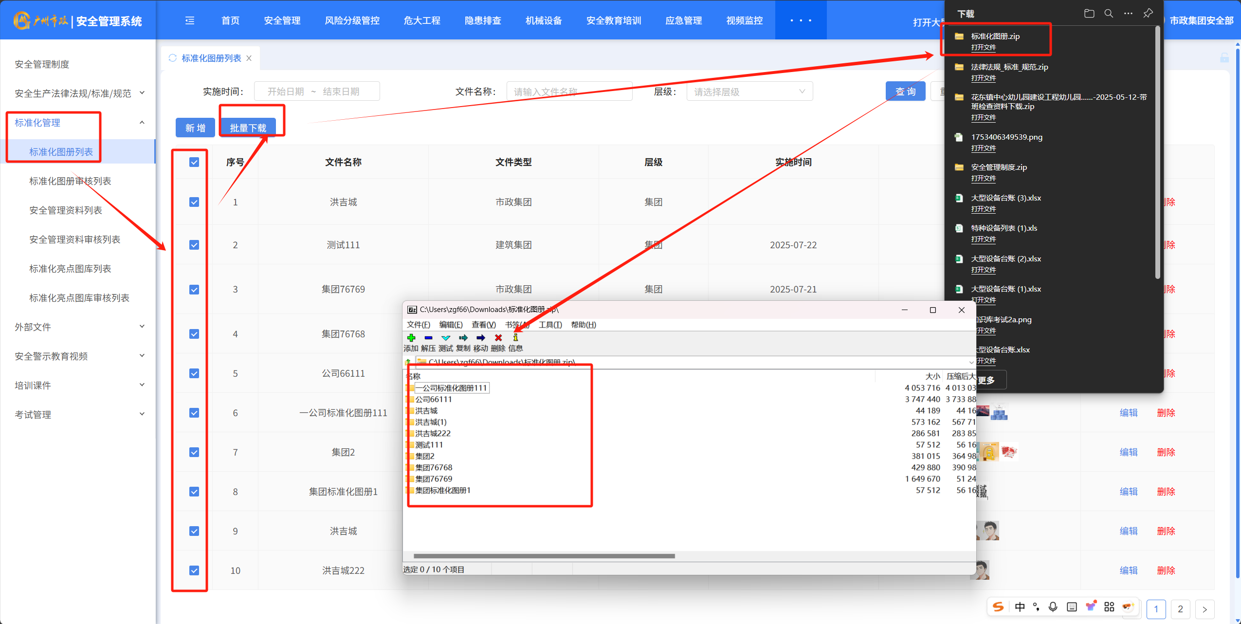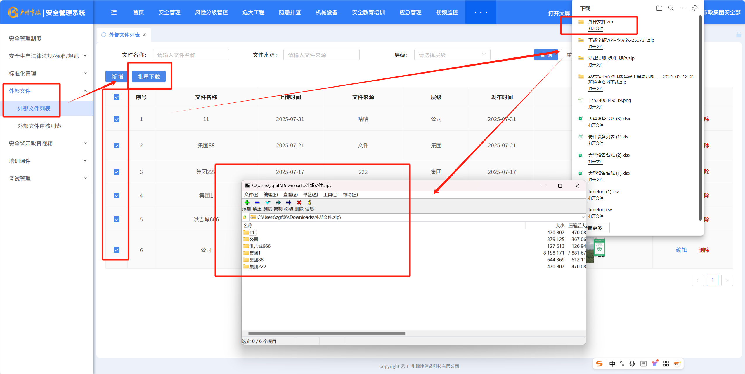 6.若集团审批通过,则该条数据直接展示在统一库列表,列表数据支持批量下载,导出附件