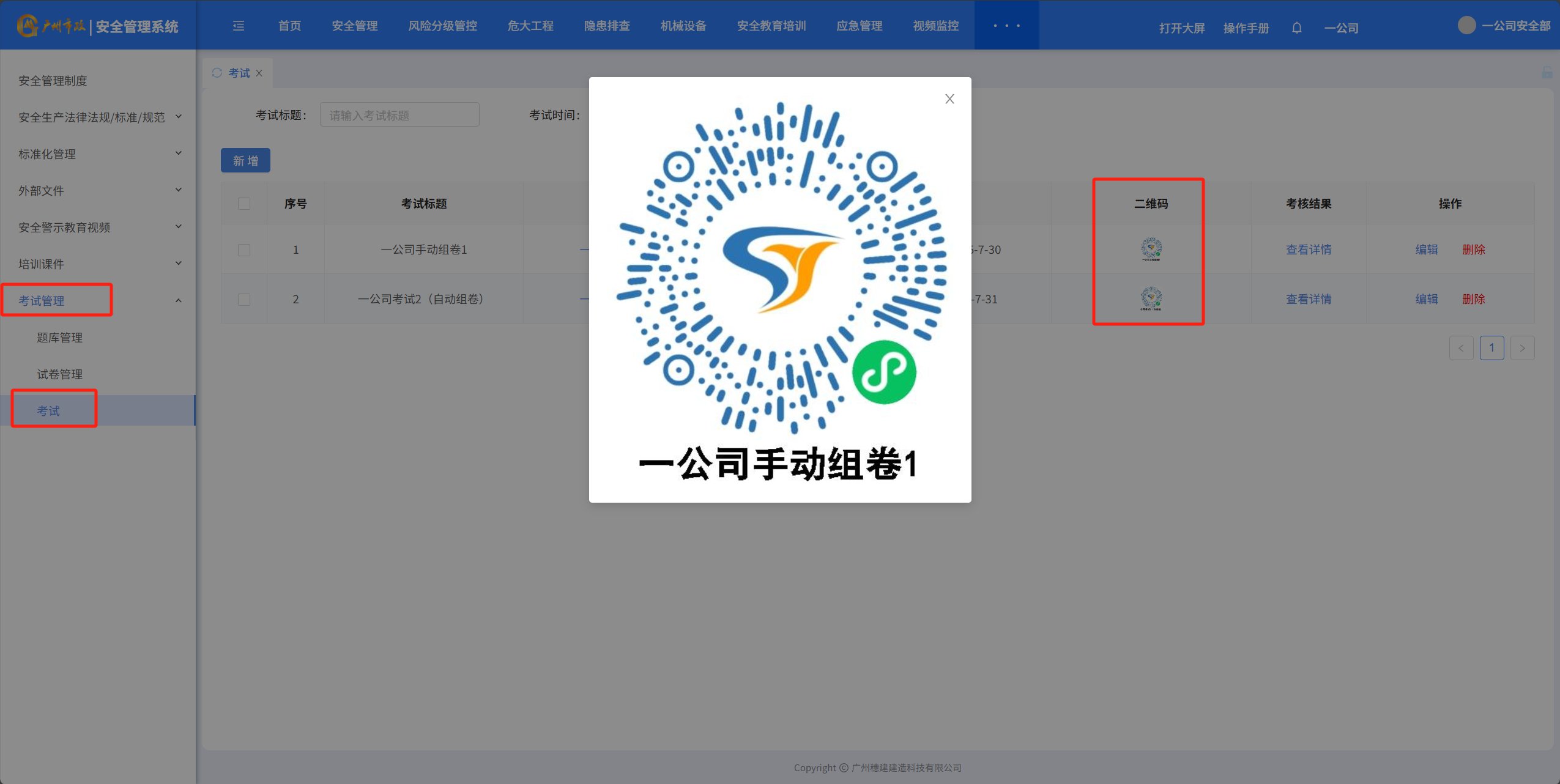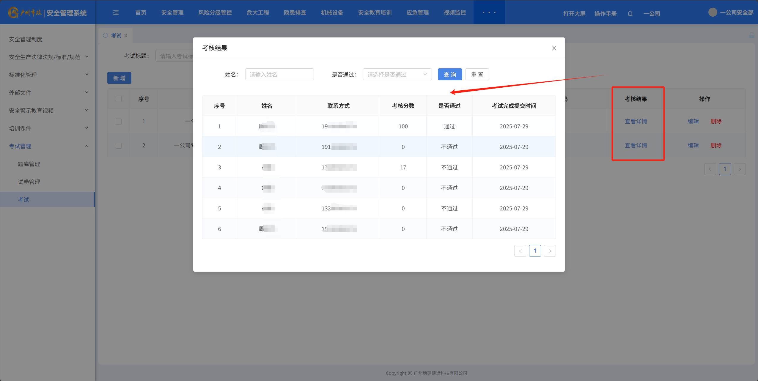 (3)人员微信扫描考试二维码进行答题考试,提交后集团、公司可查看人员考试详情