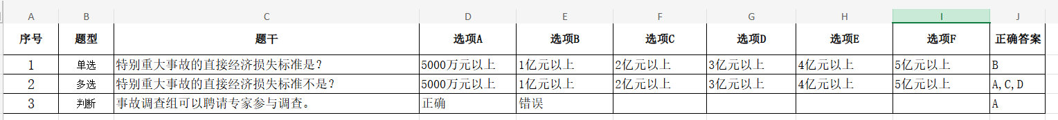 (2)导入题目:按模板样式编辑好题目内容,上传excel表格,一键导入。