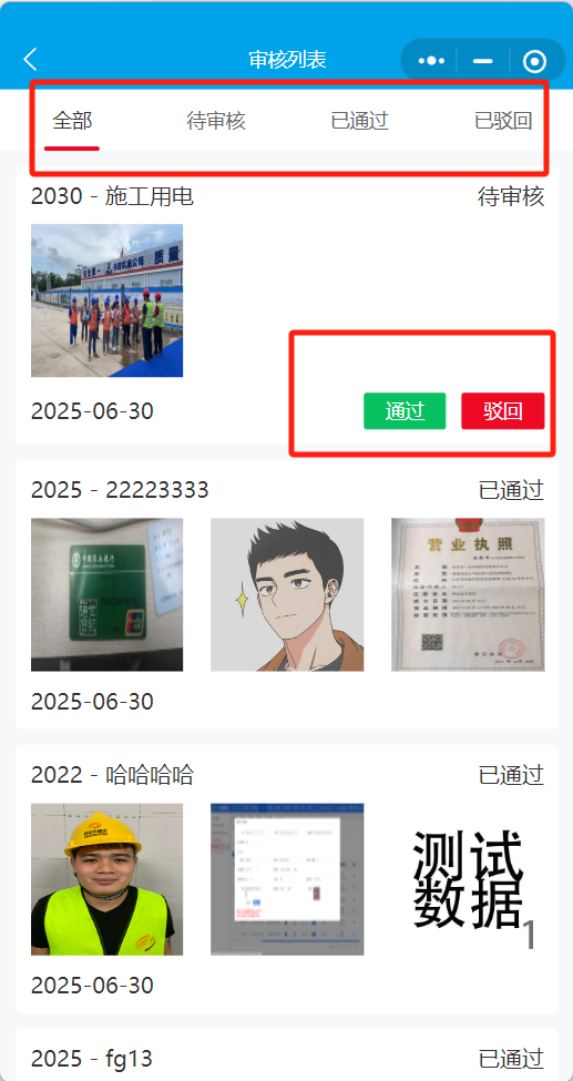 集团层级点击“审核列表”找到待审核状态的数据,进行审核(PC端、小程序端均可审核)