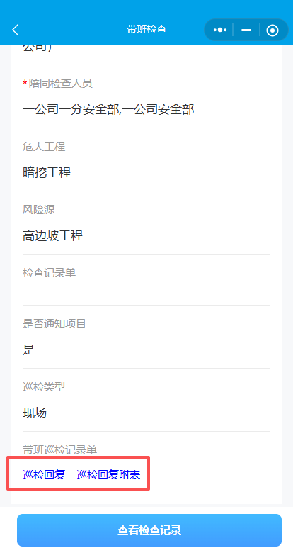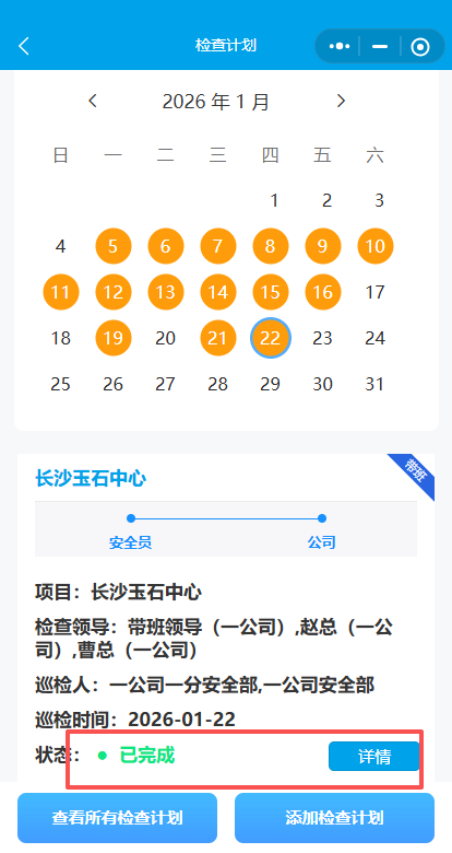12.1 选择项目已完成整改,点击检查完成按钮,返回检查计划列表再次进入刚刚的检查计划,下面会生成完整检查记录单、整改回复的文件。完成检查计划流程。