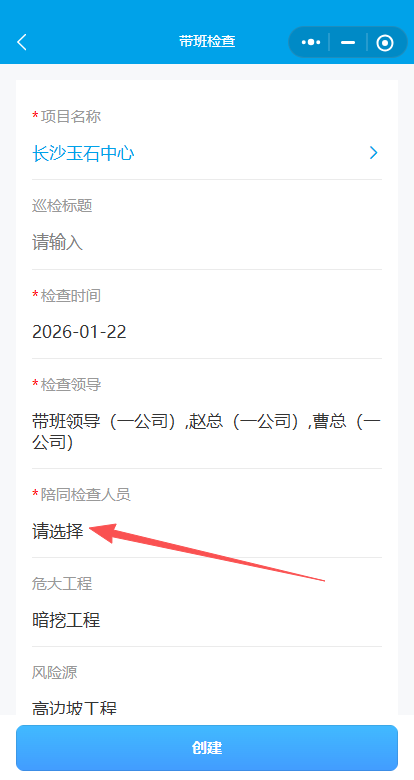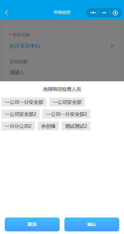 5.选择陪同检查人员 (公司安全部门人员、分公司安全部门人员)