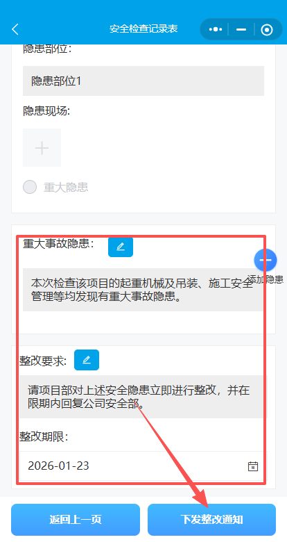 10.填写整改要求,选择整改期限,点下发整改通知。