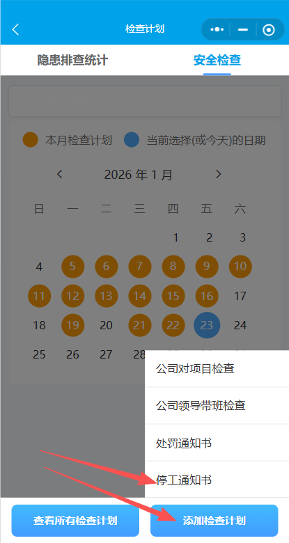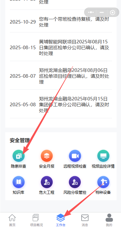 1.公司、分公司安全部门管理人员点击工作台的隐患排查