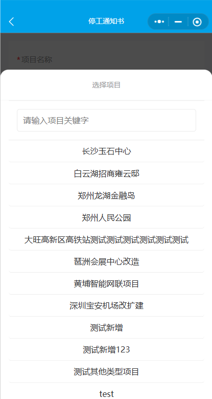 3.点开项目名称,可以输入项目关键字快速寻找项目。