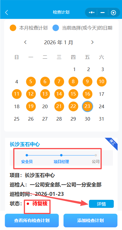 10.项目经理确认整改情况,确认后检查单变成待复核状态。