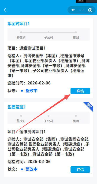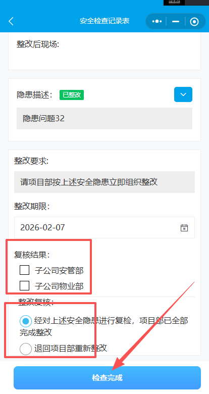 9.子公司物业部和安管部确认整改情况(物业部和安管部确认不分先后),复核结果可以看到✔为已确认。子公司物业部和安管部确认后提交至集团物业部确认。