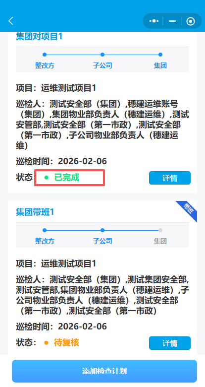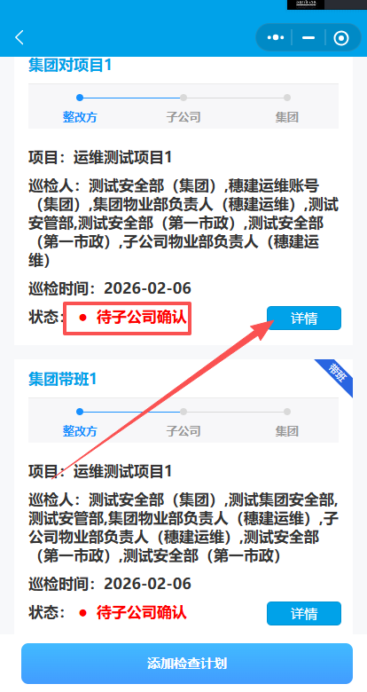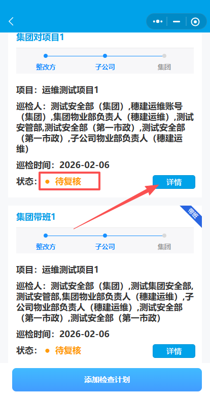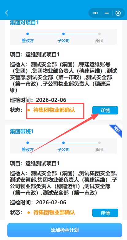 2.点击添加检查计划-集团对项目的检查。