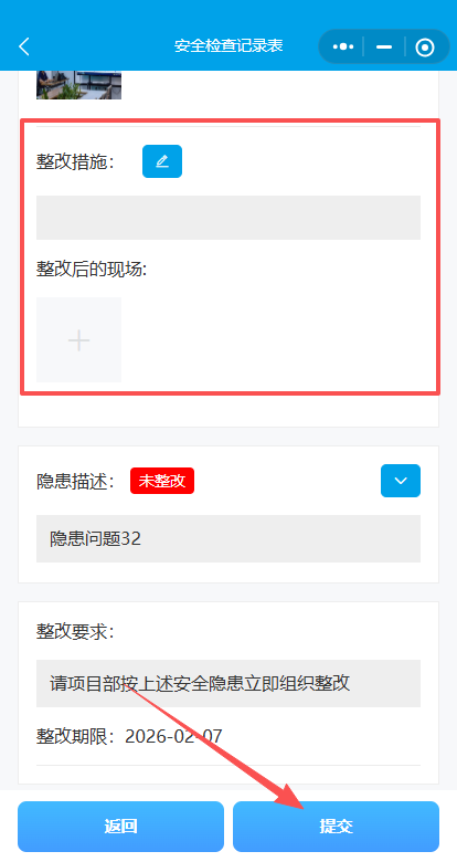 8.物业项目负责人对隐患进行整改并“提交”至子公司确认。