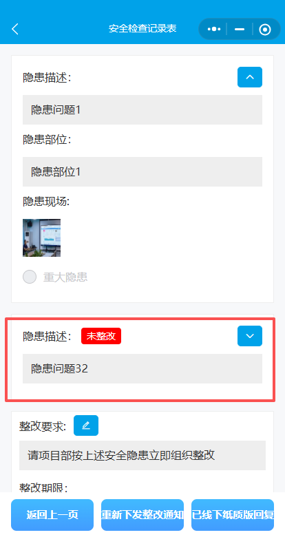 到整改要求页面,点击“重新下发整改通知”即可完成新增、修改隐患。