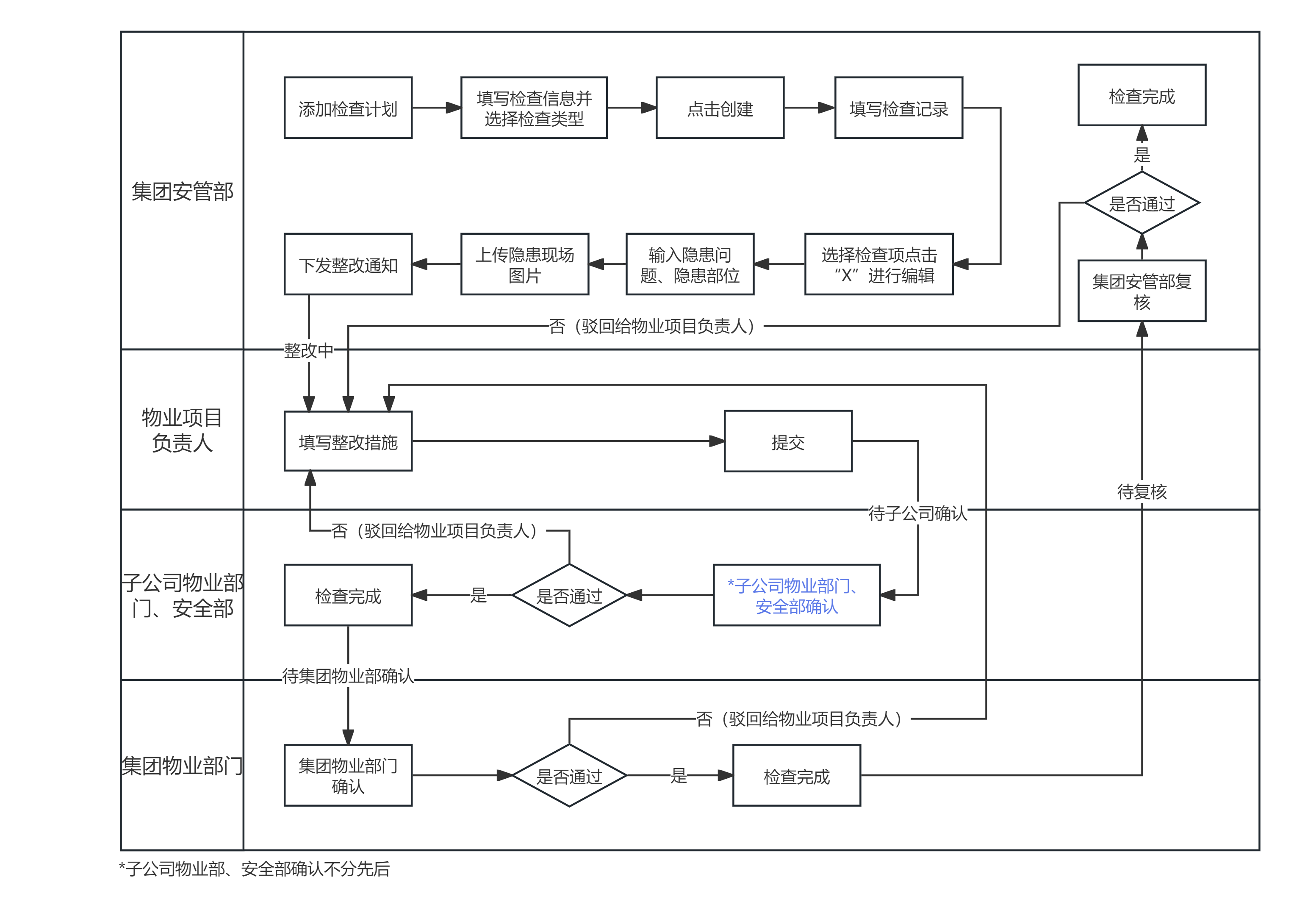 10.集团物业部确认整改情况,确认后提交至集团安管部复核。