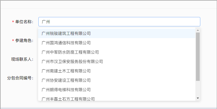 (3)输入单位名称,如果是已入库的单位可以选择单位带出统一信用代码和法人代表。