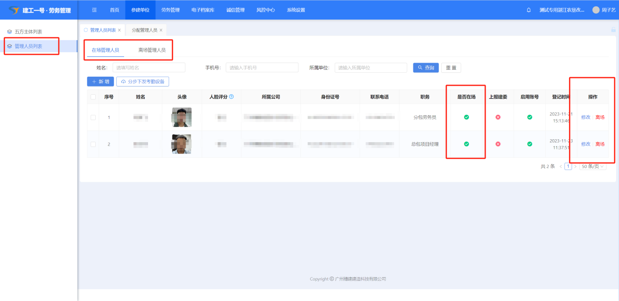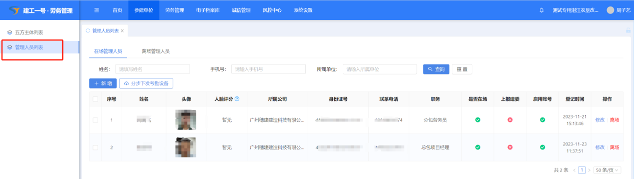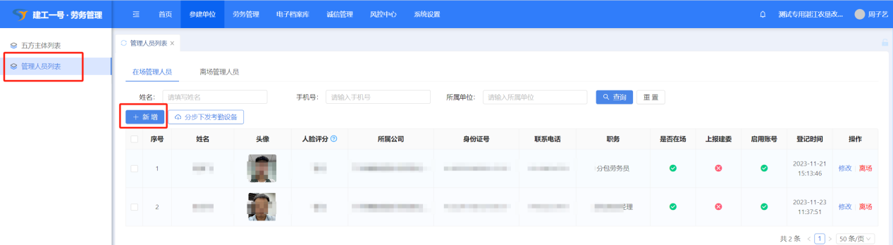 (1)点击【参建单位】-【管理人员列表】