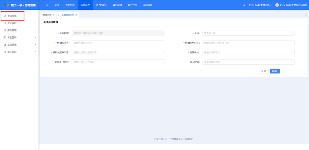 6.参建班组—新增参建班组