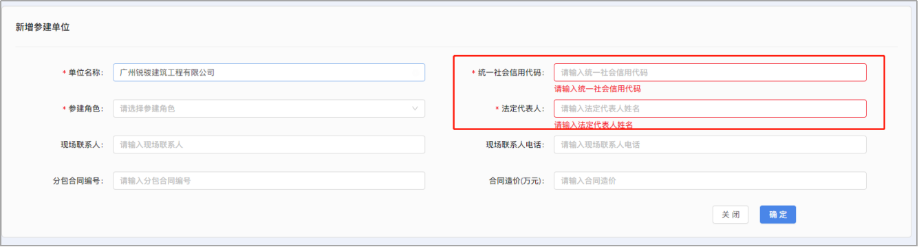 1.五方主体列表—新增参建单位